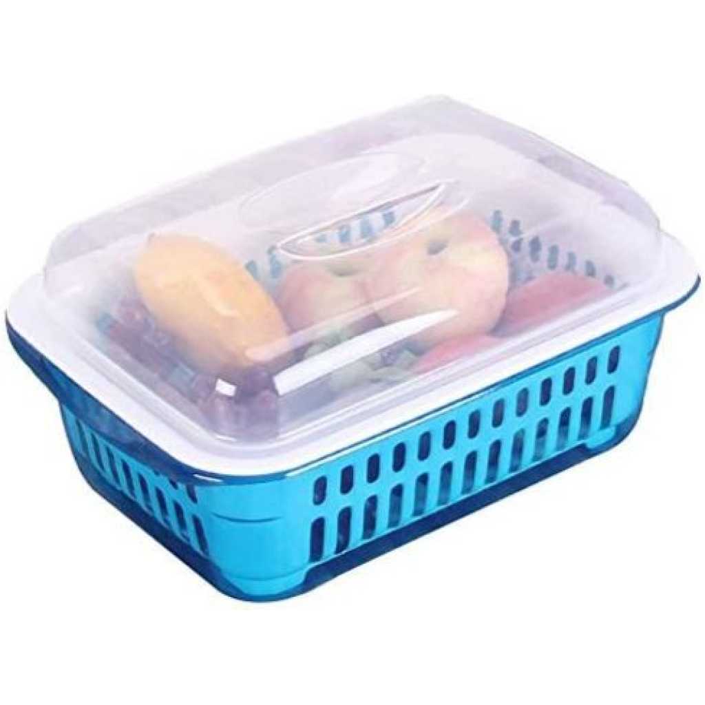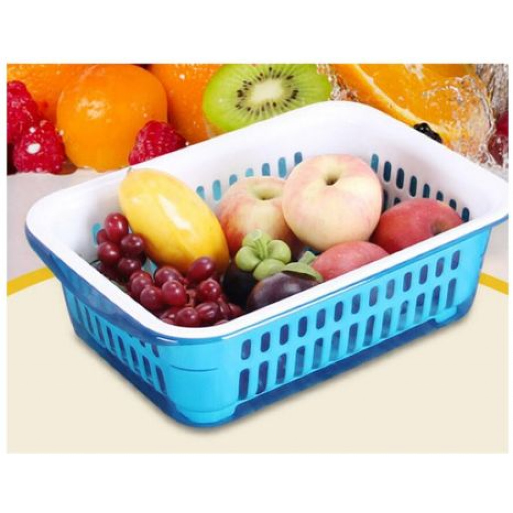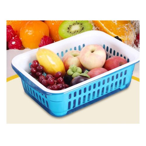 MATERIAL AND TECHNOLOGY: Food grade PP material is used. PP material makes the environmentally friendly, healthy and safe material can be used with confidence. DESIGN: The double-layer design makes it possible to save water resources to the greatest extent and make cleaning more convenient. The inner drain holes are neat and uniform in size, which can ensure fast draining and quick drying. The design with lid can also be used as a crisper. PURPOSE: The double-layer drain basket is more convenient to use. It can be a multifunctional drainage basket integrating soaking, cleaning, water storage and drainage. After cleaning fruits and vegetables, fashionable colors can also be used as plates for fruits or vegetables. TIP: Do not use corrosive cleaners or hard materials such as steel wool to scrub, and keep away from open flames. APPLICATION: Suitable for cleaning fruits and vegetables in homes, hotels, restaurants, bars, other places and kitchens. It can also be used as a storage box for storing food. This package includes: Double-layer drain basket with lid*1 One thing is multi-purpose. The drain basket can not only drain water, but also store, store water, wash, and lift the inner layer directly after cleaning. The drain hole in the inner layer can drain water quickly. The drain basket with lid can be used as a fresh-keeping box. Advantages: easy to operate and easy to drain after cleaning, and the bottom non-slip design ensures that it will not slide easily during use. The surface is smooth and has no burrs, and the hand feels fine and does not hurt your hands. The curling design on both sides is convenient to hold with both hands for better drainage. The small side handles are more convenient to uncover. Key Features: Size: 32.5 x 23.5 x 5 CM (12.80 x 9.25 x 1.97 Inch) Material: High quality PP environmental protection material Wide range of use, can wash the rice, can wash the vegetables and fruit, can also be used as a fruit bowl Convenient and creative design As a good helper for housewife