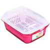 MATERIAL AND TECHNOLOGY: Food grade PP material is used. PP material makes the environmentally friendly, healthy and safe material can be used with confidence. DESIGN: The double-layer design makes it possible to save water resources to the greatest extent and make cleaning more convenient. The inner drain holes are neat and uniform in size, which can ensure fast draining and quick drying. The design with lid can also be used as a crisper. PURPOSE: The double-layer drain basket is more convenient to use. It can be a multifunctional drainage basket integrating soaking, cleaning, water storage and drainage. After cleaning fruits and vegetables, fashionable colors can also be used as plates for fruits or vegetables. TIP: Do not use corrosive cleaners or hard materials such as steel wool to scrub, and keep away from open flames. APPLICATION: Suitable for cleaning fruits and vegetables in homes, hotels, restaurants, bars, other places and kitchens. It can also be used as a storage box for storing food. This package includes: Double-layer drain basket with lid*1 One thing is multi-purpose. The drain basket can not only drain water, but also store, store water, wash, and lift the inner layer directly after cleaning. The drain hole in the inner layer can drain water quickly. The drain basket with lid can be used as a fresh-keeping box. Advantages: easy to operate and easy to drain after cleaning, and the bottom non-slip design ensures that it will not slide easily during use. The surface is smooth and has no burrs, and the hand feels fine and does not hurt your hands. The curling design on both sides is convenient to hold with both hands for better drainage. The small side handles are more convenient to uncover.