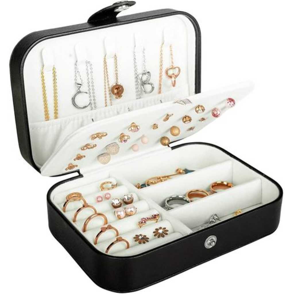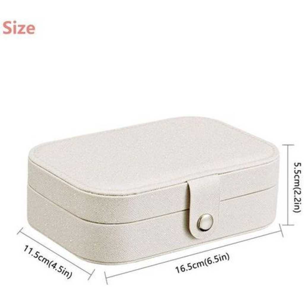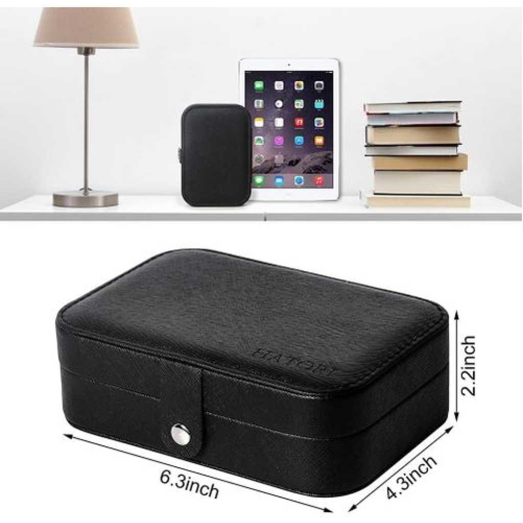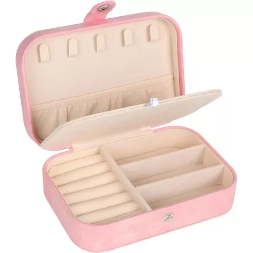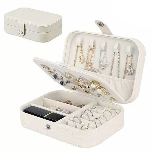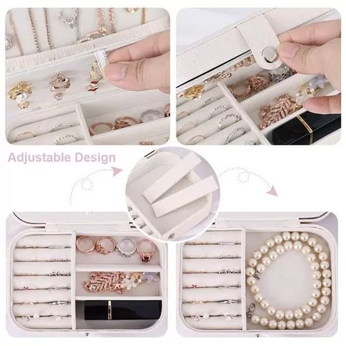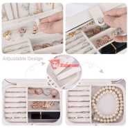 Key Features: Small bag but large capacity case with double layer, provides stud plate, necklace hooks, ring groove PU leather and lined with soft bead velvet fabric, no fading, no deforming, prevent things from scratch Adjustable storage space, suitable for putting bracelets, earrings, hair accessories, watches, etc Smooth zipper closure is easy to open and close while protecting your favorite jewelry Can isolate the necklaces and other accessories placed at the bottom, perfect for women and girls Small size, portable and lightweight, easy to place inside luggage suitcase, suits for traveling Nice gift for your girlfriend, daughter, wife, on Christmas, Birthday, Anniversary, Mother’s Day, etc. Square Material: Pearlescent Cross Grain + Soft Bead Velvet Fabric Round Material: PU Leather + Soft Bead Velvet Fabric Color: White/Pink; White/Black Square Size: 6.5×4.5×2.2inches Round Size: 4.06 x 3.94 x 1.97inches Package Included: 1xJewelry Storage Box
