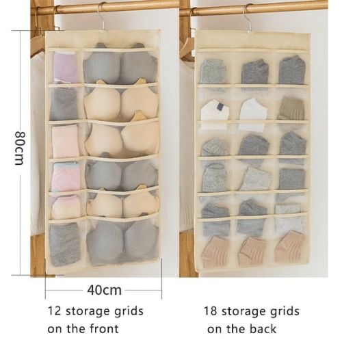 DURABLE OXFORD & SAVING TIME: Premium oxford fabric, which is easy clear with hand wahed and durable mesh pockets, transparent netting design makes you easy to find what you need at the first glance; saving you precious time. 30 MESH POCKETS HANGING CLOSET STORAGE: Side A has 12 pockets, 6 extra large mesh pockets for big items, you can easily fit a thick pantyhose/leggings/scarf/ bra or baby nursery clothes or dolls in every pocket, and 6 middle-sized mesh pockets. Side B has 18 middle-sized mesh pockets for underwear, socks, bracelet, cosmetics, hair and fashion accessories and all sorts of electronic devices to keep your accessories neat & organized. DUAL-SIDED HANGING CLOSET ORGANIZER: Durable double sided closet hanging organizer, Breathable mesh premium oxford fabric design helps you quickly identify stuff through clear pockets, saving you time from blind searching. 360 DEGREE ROTATING HOOKS HANGER: Heavy duty 360 rotating metal hanger, can change 2 sides easily. Hanging closet storage can be hanging in closet rod, clothes Bar, laundry rack, bedroom, storeroom, dorm, travel RV etc, bring a clean and tidy appearance to your home. SAVES YOU SPACE AND MAKES YOUR LIFE EASIER: The front small pockets for small items, for example, Socks, panties, bracelet, jewelry, cosmetics, glasses, hair clips. The back middle-sized pockets for items, you can easily fit undergarment, toy, jewelry, snack, medicines, small tool, office supplies, household items etc. Product Dimensions: 1.2 x 36.83 x 77.47 cm; 150 Grams Date First Available: 13 June 2020 ASIN: B08B4WTMMD Item part number: B1564646 Item Weight: 150 g Item Dimensions LxWxH: 12 x 368 x 775 Millimeters