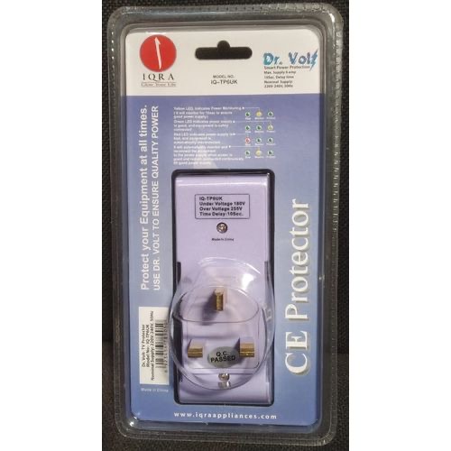 Dr. Volt TV Guard IQ-TP6UK-ECO; 80-255V, 6 Amps, Microprocessor Power Surge Protector Based-Eco Model – Green. Microprocessor Based Power guard, which protects your LED TV or any other electronic device by over Voltage, Under Voltage, Over/Under Frequency, Loose connections, Spike, Lighting, and Durable. 7-year warranty