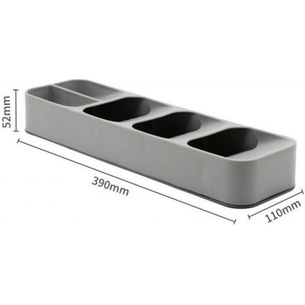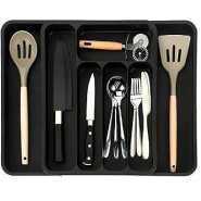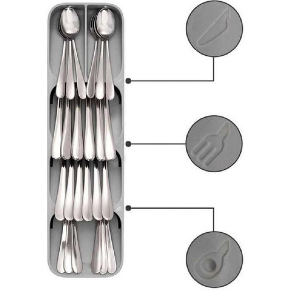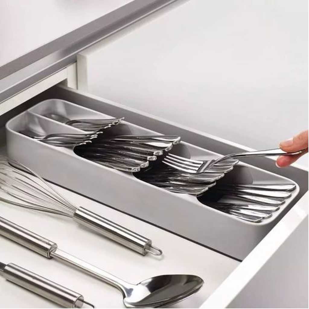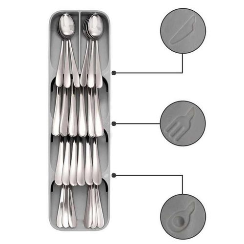 Drawer Store Expandable Cutlery Tray This revolutionary design is such a simple idea, it leaves you wondering why it hasn’t been thought of sooner. By angling and layering each compartment on top of each other, it enables you to store a full cutlery set in less than half the space of a conventional cutlery tray. Items can be placed inside either head or handle first, but the design also features handy icons for easy identification. Non-slip feet on the base stop the unit from sliding around in your drawer. Suitable for drawers with a minimum height of 8 cm (3 inches). Key Features: Uses: home kitchen, hotel Material: food grade PP Size: about 39.8 * 11.4 * 5.8cm Packing: 1 drawer tableware storage box Made of 100% food grade PP material, passed FDA / LFGB standard Multi-layer design for easy storage Simple, practical, hygienic, healthy, with a non-slip base.