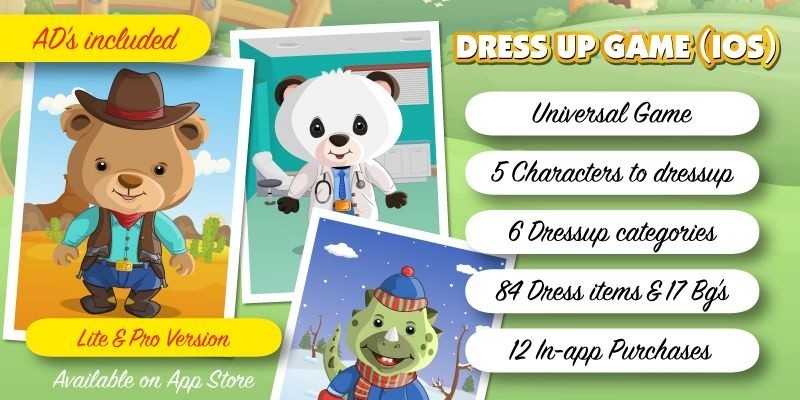 Dress up Game - iOS App Source Code. A beautiful Dressup game for Kids & Adults with lots of Monetization features.