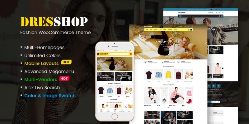 DresShop - Clean Fashion WooCommerce Theme. DresShop is a flexible, modern and clean fashion WooCommerce theme with multi-homepages, mobile layout & HOT WooCommerce f