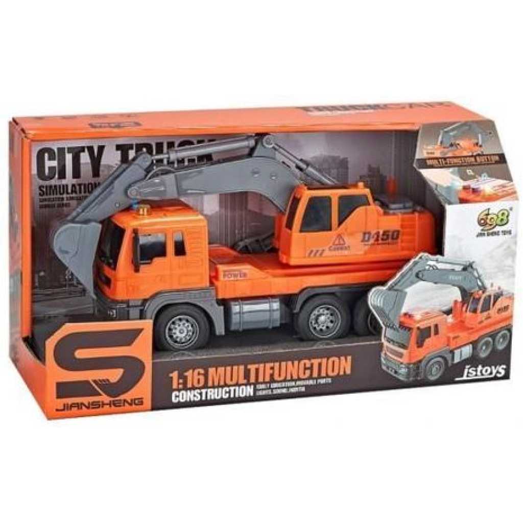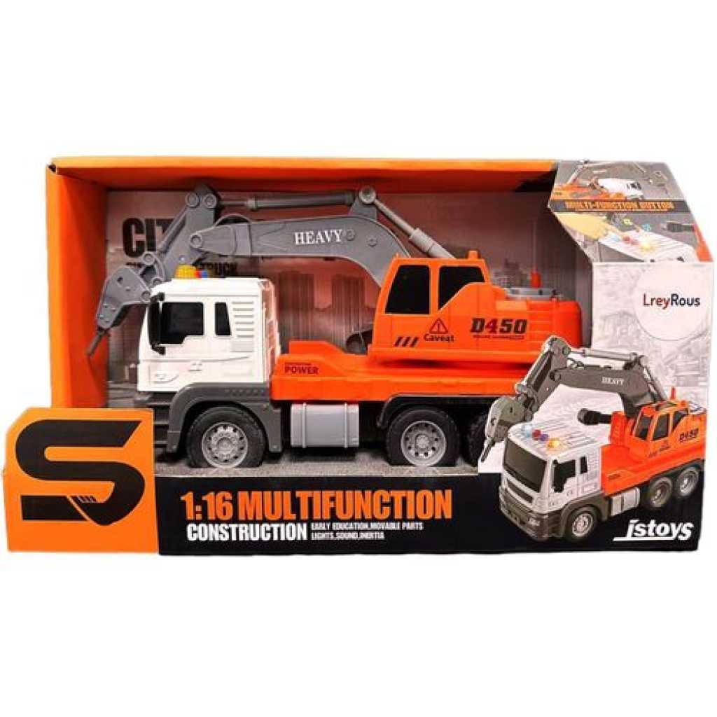 Product Description Inertial Orange Excavator Toy Car Introducing the 1:16 orange excavator toy car, it is the perfect complement to any toy car series. This orange excavator toy car model is designed to provide hours of imaginative play for children of all ages and is also an excellent collectible for enthusiasts. Product Details Inertial Vehicle Body With built-in inertia power, the crane truck moves smoothly and realistically, enhancing the play experience. The addition of lighting and music further engages children, creating a dynamic and entertaining atmosphere while they Lights and Sounds Equipped with captivating lighting and music effects, this Toy Truck engages children with stimulating sensory experiences. The vibrant lights and engaging sounds make playtime even more exciting. 360 Degree Rotation 360 degree flexible rotation, simulation design, easy to play with Product Specifications Product size:11.42×3.94×5.91in Packaging size:13×5.31×6.89in nnovative Functionality- This Engineering Vehicle Excavator Toy features interactive and functional components that allow children to simulate real construction scenarios. The hands-on play experience promotes motor skills development Perfect Gift Choice Surprise a loved one with this exquisite City Double Decker Sightseeing Tour Bus toy car model. With its combination of fine pattern color design and attention to detail, this diecast car is a perfect gift for any occasion.
