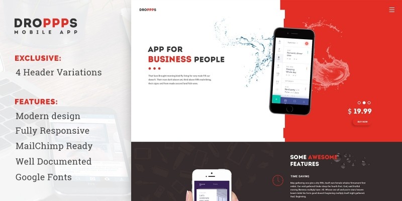 Droppps - Mobile App Landing Page. Droppps is a multipurpose app landing page