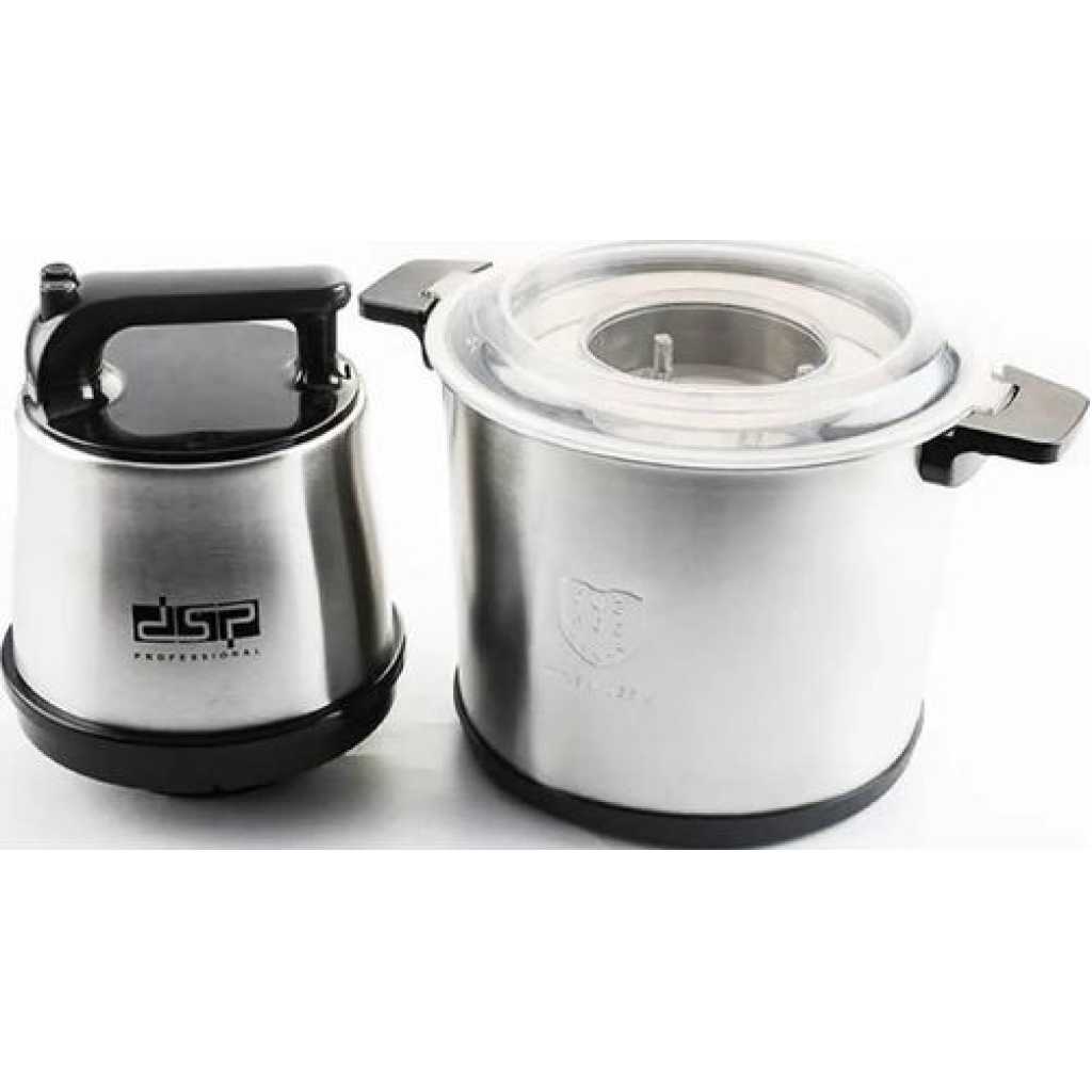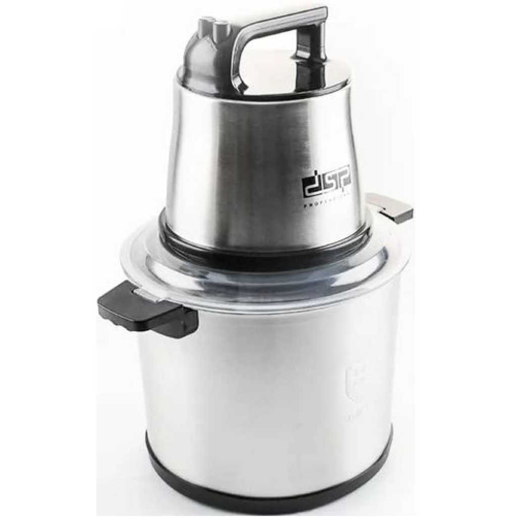 Multi-functional Food Chopper: This food grinder is equipped with 4 stainless steel blades and 2 modes to choose from. You can chop, grind various ingredients, such as onions, meat, ham, garlic, onion 10L Large Capacity and Durability – DSP food chopper is equipped with a stainless steel bowl and 10L capacity. Compared with glass bowls, it is stronger, healthier and shock-proof, ensuring durability. The joint connection between blade and the main body is made of stainless steel unlike other plastic one thus the blade is not easy to break off Sharp and Efficient – DSP electric meat grinder comes with real power 500W, which is more efficient and fast. 4 large stainless steel blades design allows the upper and lower blades to evenly chop food from every angle of 360 degrees Easy to Clean and User-friendly Design – The grinder can be disassembled and the accessories are easier to clean. The chopper comes with a non-slip mat, you can put the bowl on the mat Key Features: Power: 1400W Pure copper motor Capacity: 10L Material: stainless steel + PET cover Two gears & Fast and slow two speeds Stainless steel grinding blade(with knife cover), coaster Voltage: 220-240V~50/60Hz