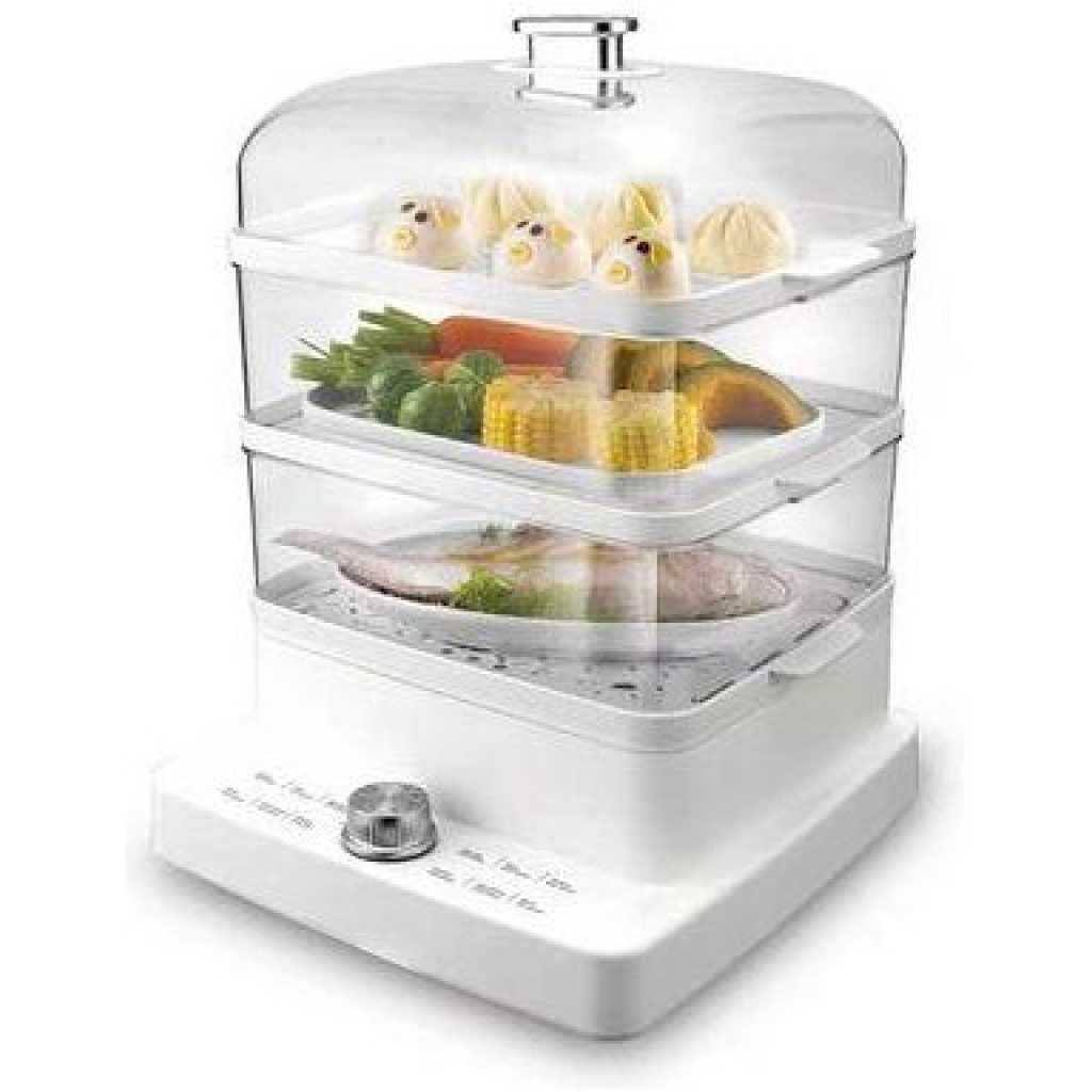 Key Features: Dsp 1300ML 3 Tier Electric Vegetable Food Steamer Cooking Pot- White – On / Off switch – 3 host layers – top / evaporate layer – second / drain pan layer – third / water tray layer