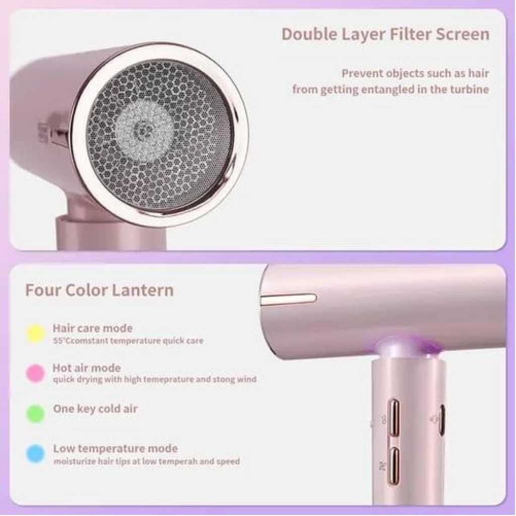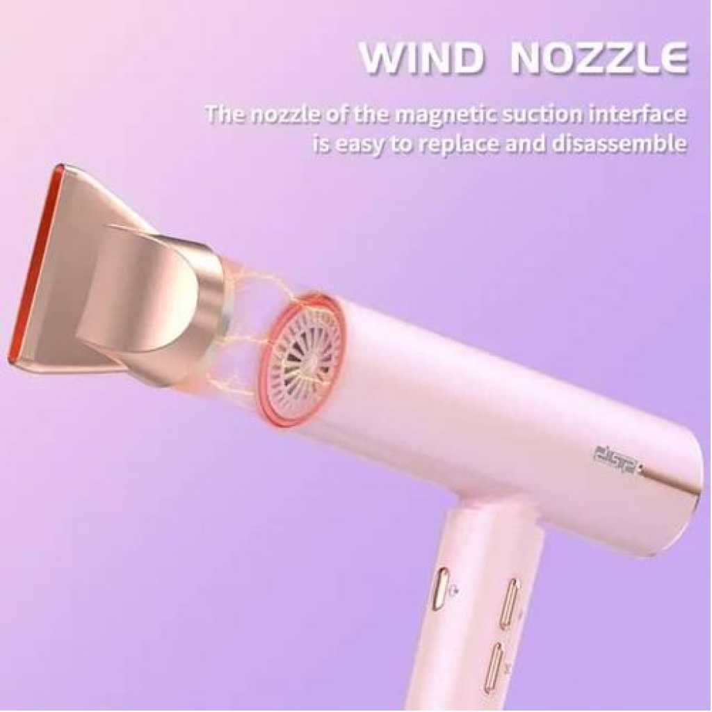 [Ionic Technique]: Advanced ionic performance tames frizz and static for natural [AC Motor]: Extended-life AC motor, more efficient, faster and cleaner than DC Motor [6 Heat/ Speed Setting]: 2 Speed +3 Heat Setting +Cool shot – 6 heat & speed settings allow max choices for drying adjustment, [Nozzles+ Removable Filter]: Nozzle directs airflow to reduce fly away hairs and create smooth finish; removable Filter help for easy cleaning. [Long Cable+ Hang up loop]: 3m long cable meets salon and home use, easy to use and store. Key Features: Voltage: 220-240V~50/60Hz Power: 1600W Rotating speed: 100000 RPM/MIN Three speeds &Three temperature choices Automatic cleaning function With concentrator size : 22.7*23.1*6.8cm Narrow condenser: 63mm Large opening concentrator: 93mm
