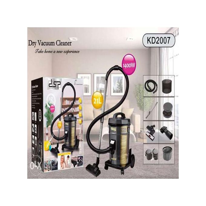 Dsp 21 Liter Commercial Vacuum Cleaner- Brown A commercial grade backpack vacuum cleaner that is easy to operate. Powerful motor with low noise operation. Ideal for hard to reach places. Includes full set of attachment tools. Specifications: Color: Black Capacity: 21 Liter Voltage: 220-240V~50/60Hz Power: 1400 watt Noise: Low Brand: DSP Model: KD200 Key Features: Dsp 21 Liter Commercial Vacuum Cleaner- Brown Brand: DSP Model Number: KD2007 Type: Dry Vacuum Cleaner Color: Black Capacity: 21 Liters Power: 1400 watt Noise: Low Dimensions: (HxWxD) 490 x 315 x 335 mm