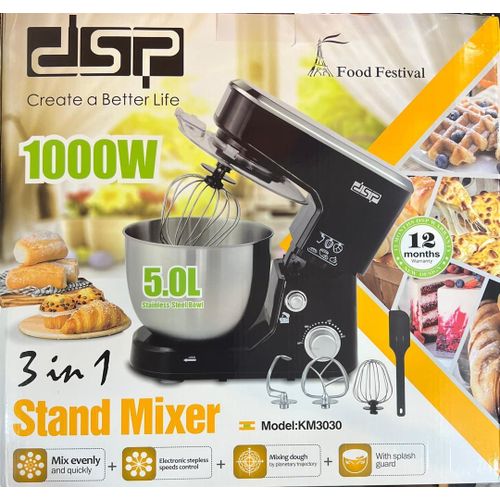 The dsp mixer made of durable Steel with a stand and a metal bowl is the perfect assistant in your kitchen. The stylish, reliable, practical model of the desktop mixer will help you in preparing culinary masterpieces. With a dsp mixer, it’s easy and easy to cook mashed potatoes or beat eggs for dessert, knead the dough or mix the minced meat with special whisks. Cook with pleasure thanks to a functional mixer in an elegant design. The mixer is located on a stand and has a convenient metal bowl with a volume of 10 liters. Not whimsical at work. The compact size does not take up much space in the kitchen. It is simple and convenient to work with such a mixer. Brand: DSP Model number: KM3030 Type: Stand mixer Motor power: 1000 watts Capacity: 5 L It is made of durable plastic with a stand and a metal bowl. Compact size that does not take up much space in the kitchen. It is simple and convenient to work with such a mixer. Key Features: Model number: KM3030 Type: Stand mixer Motor power: 1000 watts Capacity: 5 L It is made of durable plastic with a stand and a metal bowl. Compact size that does not take up much space in the kitchen. It is simple and convenient to work with such a mixer.