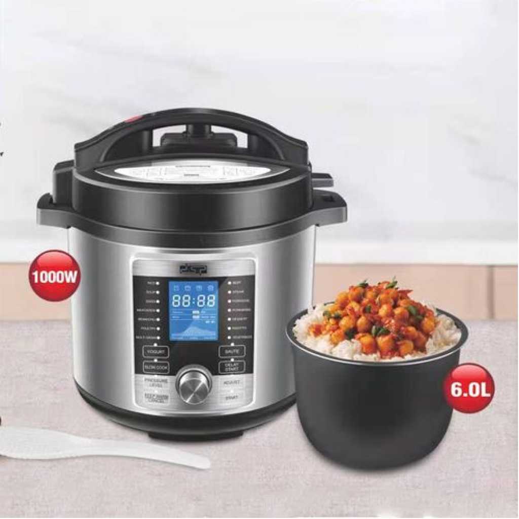 it’s convenient cooker’s generous capacity perfectly cooks any variety of rice with specialized functions for both White and Brown Rice. Once the rice has finished, it will automatically switch to Keep-Warm so there’s no need for monitoring or stirring. Unique Sensor Logic Technology uses an on-board micro-computer that ‘thinks’ for itself to automatically optimize cooking temperature to enhance flavor and texture. It Simultaneously Steams Food: Nutritious And Healthy. The Steam Tray allows for healthy steaming of meats and vegetables, even as rice cooks below! Need rice in a pinch? Save time with the Quick Rice function which cuts cooking time by up to 50%. The programmable is great for families on the go, delivering delicious rice ready when it’s needed. And when the cooking is done, the inner cooking pot and all accessories remove for easy cleanup in the dishwasher. Recipe Booklet, Steam Tray, Rice Measuring Cup, Serving Spatula and Soup Ladle included. Key Features: Multi Function Automatic Cook One touch preset buttons/Automatic. Safe Lock Lid with Steam release/ Non stick Inner Pot. Replaces six common devices: Slow cooker, Canner, Soup Maker, Steamer, Cookware and Rice Cooker. Alumnium inner pot.