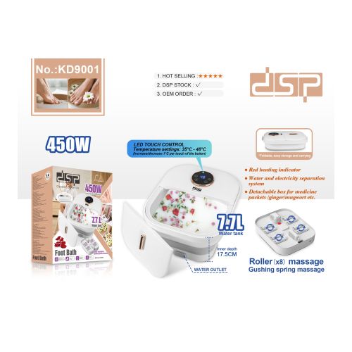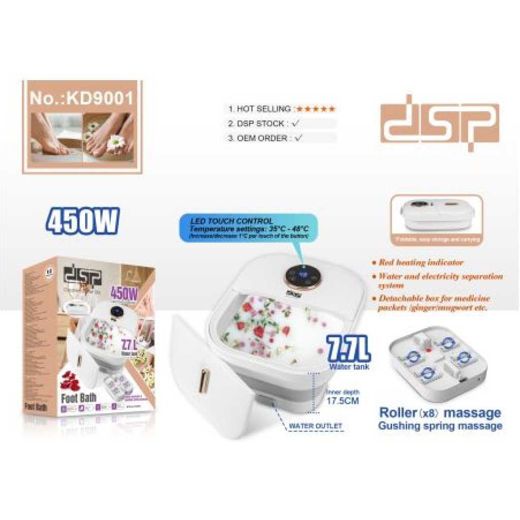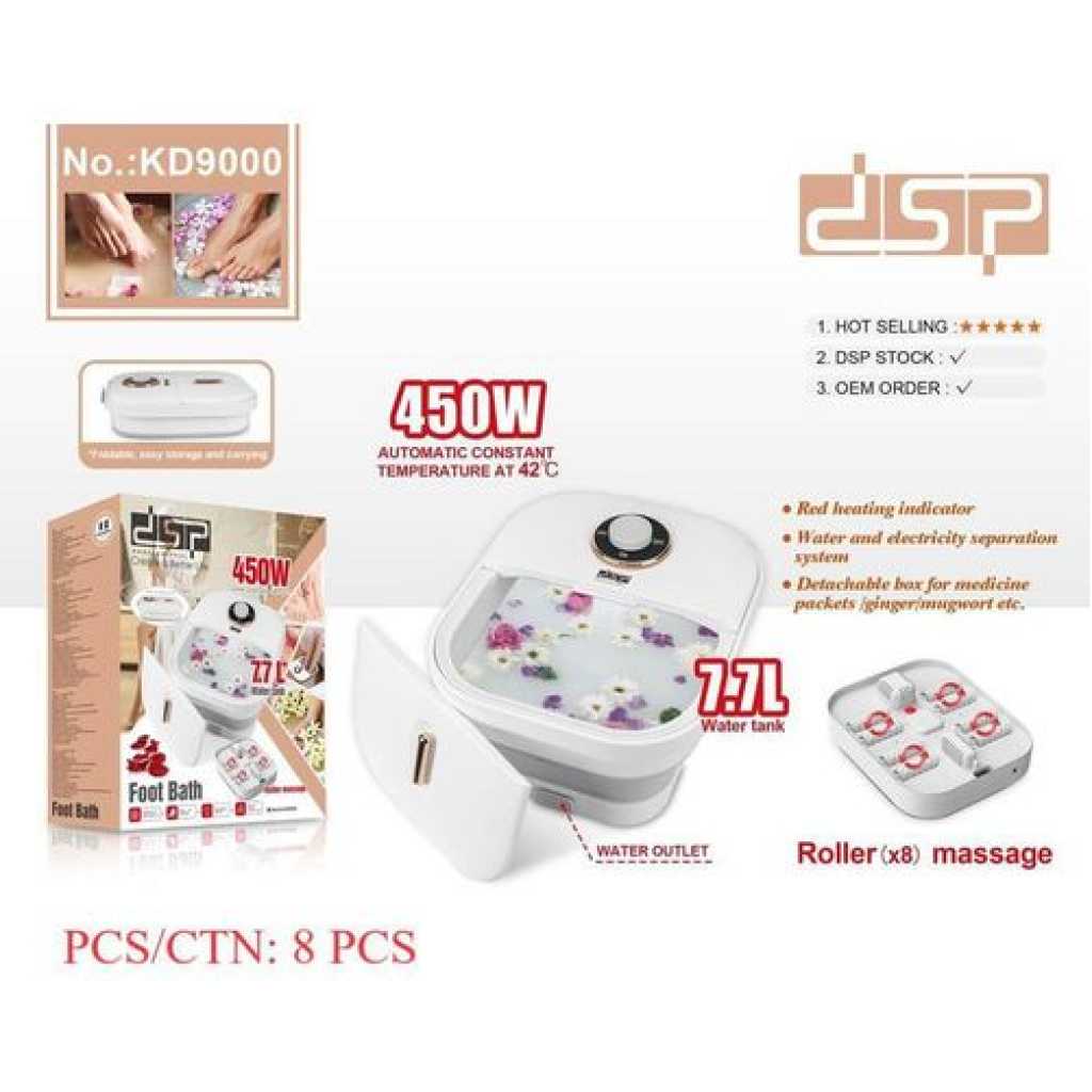 Dsp 7.7L Professional Foldable Foot Bath Tub Water Tank Electric Heating Thermostatic Constant Temperature Roller Massage And Gushing Spring Foot Bath Spa- Multicolor