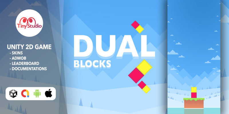 Dual Blocks - Unity project. Tap to flip block, combine same colors. Collect coins and open new skins. It’s an endless type of game.