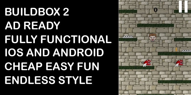 Dungeon Drop Buildbox Game Template. Fun, fast paced, action game. Fully functional endless game where the player avoids enemies by falling through a guided pathway.
