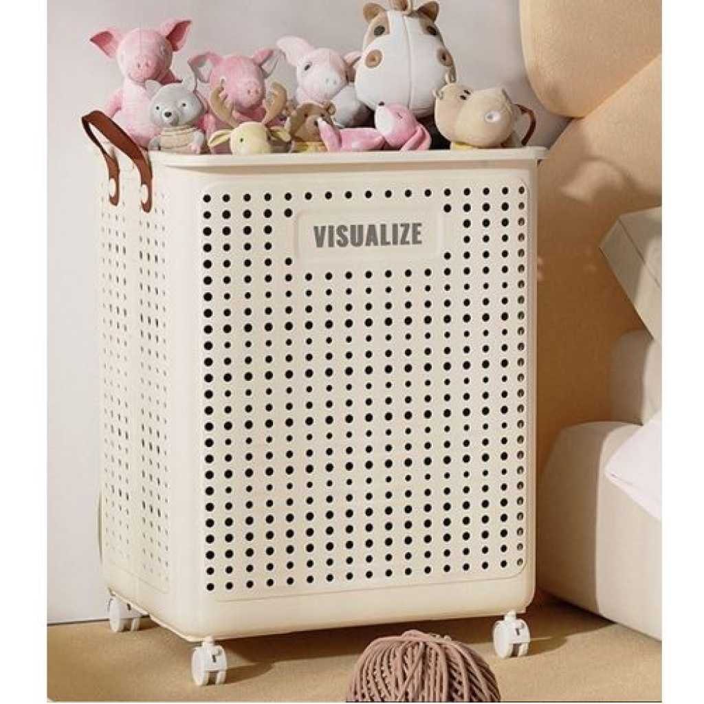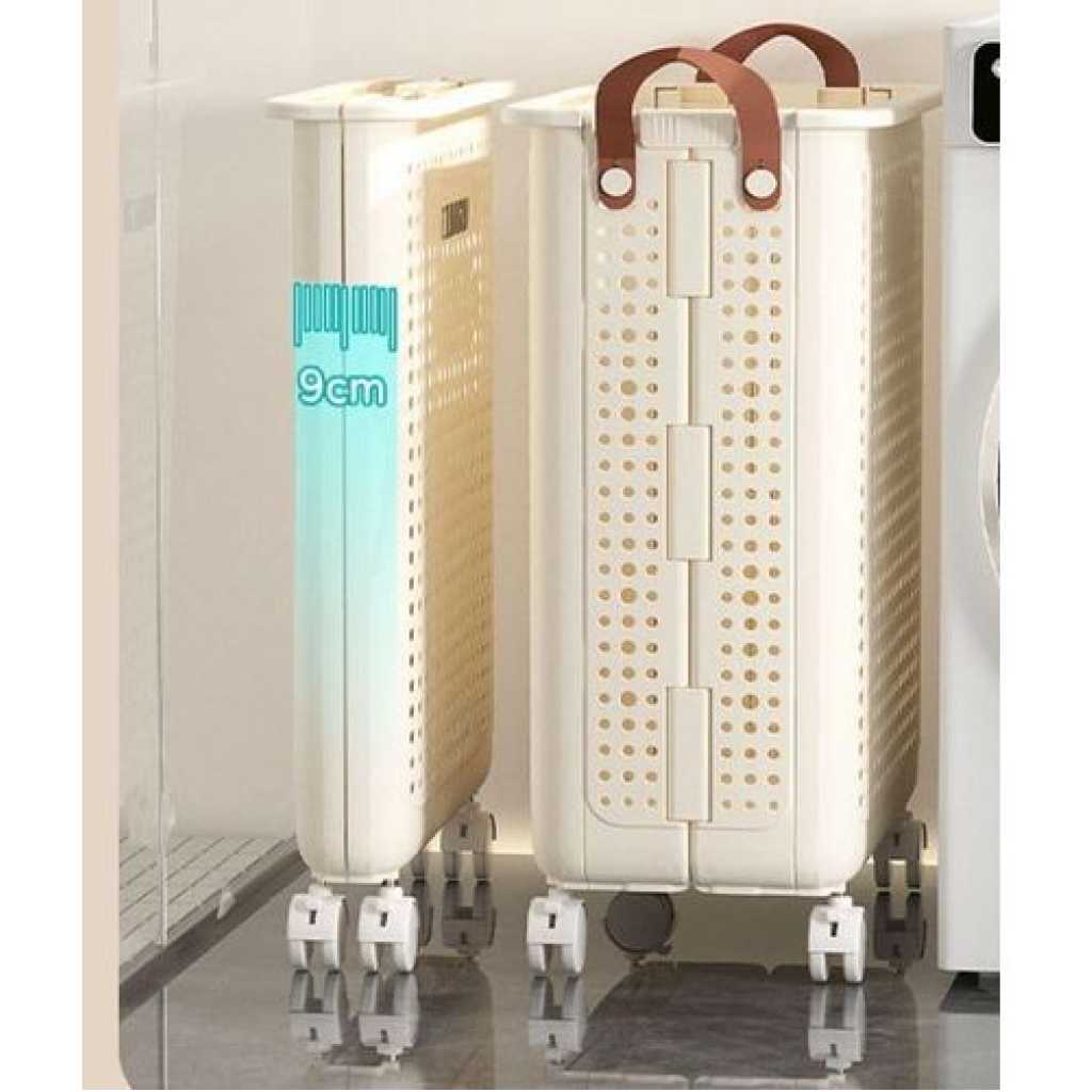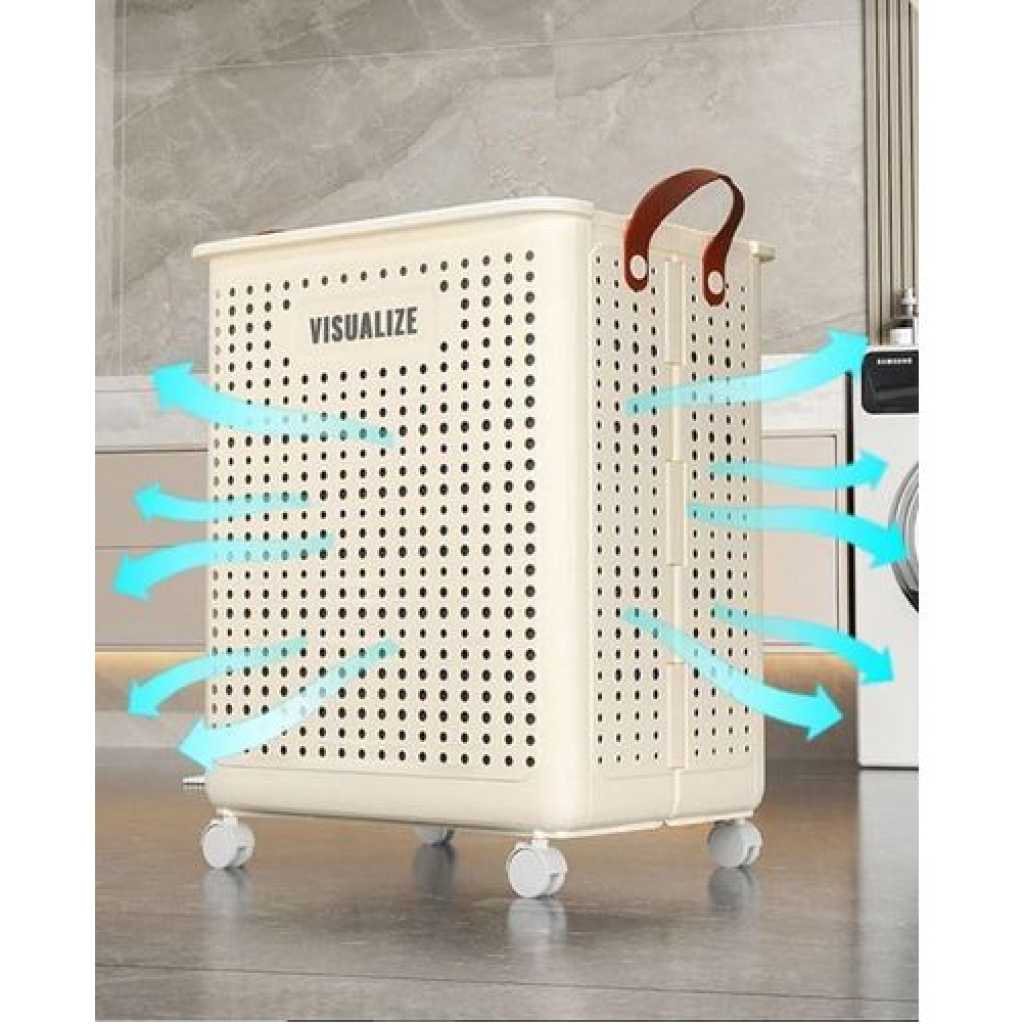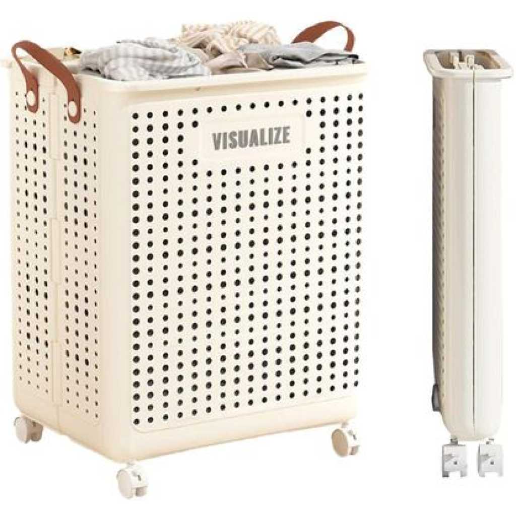 Key Features: Product description FEATURE: This folding laundry hamper is very durable and can be stored Made of PP material, it is recommended as an item that is fun to care for on a daily basis! You can use this one item for various storage purposes in your daily life! The laundry basket has excellent ventilation to help your laundry dry quickly. This is a large-capacity laundry basket that can hold a lot of clothes at once. This laundry basket is very sturdy, has a delicate design and is small in volume, making it easy to store in the bathroom. It is also suitable as a basket for changing clothes in the bath or as a clothes basket. It is light, easy to move, and easy to use. It has casters for easy movement. Recommended for use as a shopping basket, food basket, tool basket, etc. Basket for food travel. Carry garden tools together. Storage for laundry and laundry items, laundry storage, etc. Can store miscellaneous items such as toys, books, CDs, etc. SPECIFICATION: Household Folding Laundry Hamper Color: Cream Yellow Available sizes: 14.9 x 18.9 inches (37.7 x 22 x 45.4 cm) (52L) Material: Plastic Large capacity, high load capacity, folding, improved handles, breathable mesh construction, casters included. PACKAGE CONTENTS: 1 x Rolling Slim Laundry Basket