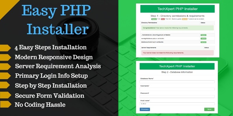 Easy PHP Installer - Complete PHP App Installer. PHP Installer is a wonderful installation wizard of any type of PHP Application without coding hassle. Php script installer