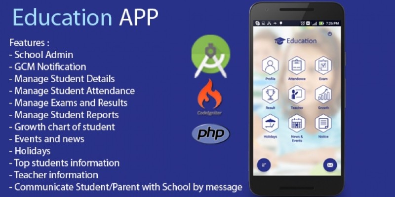 Education App - Android Source Code. Education App offers parents a mobile app, which provides them all the information at their fingertips. At the school’s end