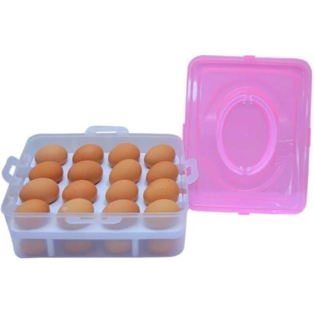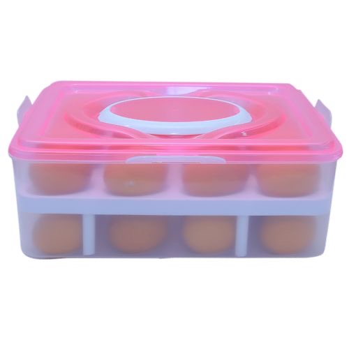 Egg Storage Container -Pink Keep eggs protected and organized with this covered egg holder tray. Made of sturdy food-safe BPA free plastic, this unique egg container features a transparent lid for clear visibility and a built-in handle, making the tray easy to slide out and remove from the refrigerator when needed. Stacking neatly in the fridge, the tray is supplied with a sturdy lid so another egg box or other food items can stand on top, saving space and keeping the refrigerator fully packed and organized. Much more attractive, practical and hygienic than store bought egg containers and a perfect carrier and holder for those who raise chickens, the egg tray can be hand washed with mild detergent and water – not suitable for dishwashers. This is a 100% New and High Quality product! Material: Plastic Color: Pink.Quantity:1 Tight, convenient for house keeping, carrying and camping .Plastic egg storage box holds up to 32 eggs at one time Note: Please open and close the box carefully,because the eggs are fragile Package Content: 1 X Egg container Features & details Perfect Storage Box to store eggs safely as well preserving the freshness.It can accommodate 32 Eggs (In 2 Layers) at a time. Transparent egg tray design for easy visibility – never run out of eggs again. Distinctive see-through plastic egg holder make ideal packaging for hygienically. Hygienic BPA free & food grade plastic container keeps eggs fresh – hand wash with mild detergent. This egg holder keeps stacked items in securely place, whether in the freezer, refrigerator, or cupboard. Fits neatly in refrigerator Product Dimensions – 28 x 22 x 11 CM :: Capacity – Holds up to 32 Eggs :: Material – Plastic :: Color . Pink:: NOTE:- The image of the product is a digital image and there may be design depending upon various devices and screens. Key Features: Perfect storage Box It can accommodate 32 eggs Transparent egg tray design Easy Visibility Keeps tracked items in securely place Hygienic free
