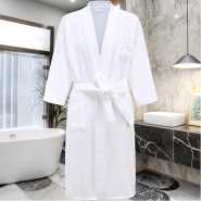 Key Features: 100% cotton Lightweight, breathable bath robe that is suitable for both men and women Features a kimono styled collar along with 2 convenient side patch pockets 100% Cotton material is incredibly soft and comfortable to wear Includes an adjustable belt for a fitted look and a waffle cone texturized fabric design White full length waffle robe is great for relaxing and lounging at home