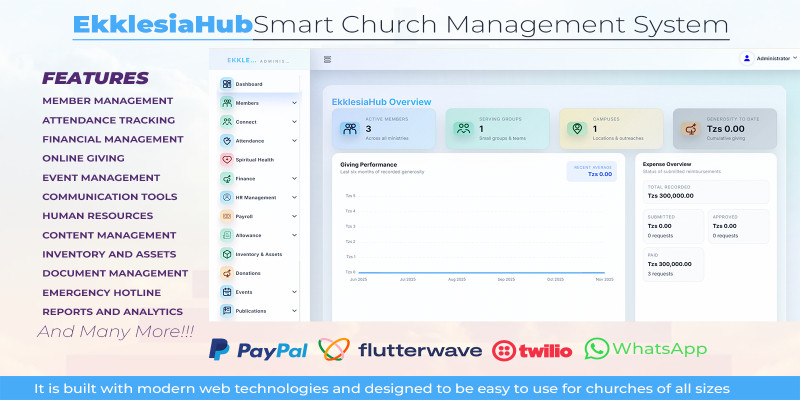 EkklesiaHub - Smart Church Management System. complete church management system that helps churches manage members, finances, events, and communications all in one place.
