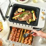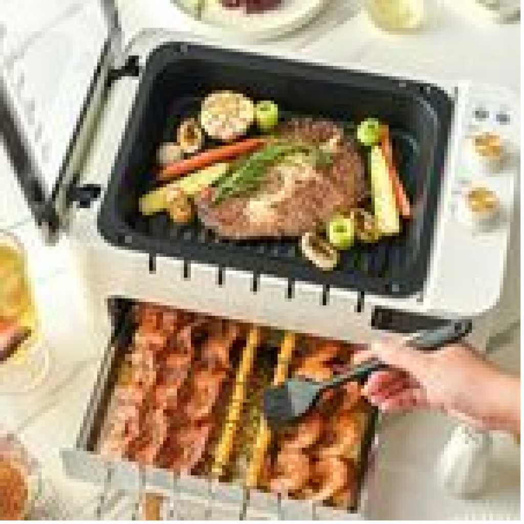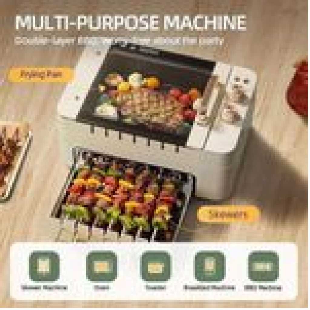 Key Features: 【360 rotary roast】the electric bbq kebab grill machine is equipped with a 360° automatic rotating feature, ensuring even cooking from all sides. the machine features dual knobs that allow for precise temperature control and timer settings. 【removable glass cover】 equipped with a detachable glass cover, the grill machine effectively prevents oil and grease from coming into direct contact with the heating elements. this design minimizes smoke and odors, keeping your clothes and surroundings free from unwanted smells. 【high power quick roasting】the ingredients are fully grilled from the outside to the inside, the high fire power locks the gravy, the meat skewers are golden and charred, and the savory juice is full of flavor, pursuing the original charcoal grilled flavor. 【easy to clean】the non-stick household smokeless barbecue double layer grill oven features a detachable double-layer design, making it easy to clean. the removable parts can be conveniently disassembled and cleaned, ensuring effortless maintenance and hygiene. 【versatile cooking】the automatic 360° rotating skewers machine offers three versatile cooking modes – skewers, grilling plate, and baking. in addition to grilling skewers, the machine can also be used for frying and grilling other types of foods, providing you with endless culinary possibilities.