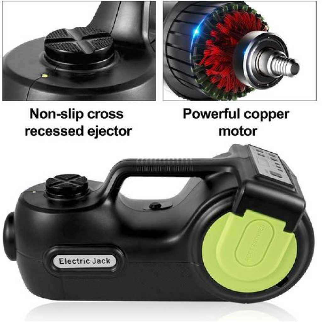 Electric Car Jack 5ton Car Jack Hydraulic, Electric Floor Jack With Electric Impact Wrench, LED Light Hydraulic Jack Car Repair Tool, 155-530mm Lifting Range For SUV MPV Sedan Truck Repair- Black . VEVOR is a leading brand that specializes in equipment and tools. Along with thousands of motivated employees, VEVOR is dedicated to providing our customers with tough equipment & tools at incredibly low prices. Today, VEVOR has occupied markets of more than 200 countries with 10 million plus global members. Why Choose VEVOR? 1. Tough Quality Assurance 2. Incredibly Low Prices 3. Fast & Secure Delivery 4.30-Day Free Returns 5.24/7 Professional Customer Service Product Description 5-Ton Hydraulic Car JackThe electric jack has four functions, hydraulic jack, tire inflation pump, warning light, and LED light, which can meet your multiple needs. The electric wrench can remove screws and quickly replace tires. The car jack kit is an indispensable helper for garages, farms, highways, and long-distance trips. It is very suitable for emergency roadside tire replacement.5-Ton Lifting CapacityThe automatic car jacks have a maximum lifting weight of 5 tons (11000 pounds) and a lifting height range of 5.9 to 20.9 inches. Perfect for cars, CRV, SUV, Sedan, etc. Before the operation, park the car on flat ground, and avoid the car moving.Automatic LiftingWith the simple control panel, the electric floor jack can automatically rise and fall, and it can reach up to its maximum value in minutes. The Jack’s self-locking structure can prevent the car from falling suddenly and ensure the operation of security.Electric Impact WrenchThe impact wrench can easily and quickly remove the tire screws, and it can be used after connecting to the 12V car power supply. Very suitable for emergency roadside tire replacement. Say goodbye to tedious manual disassembly. Multi-function ToolboxThe red triangle warning sign outside the box can be used as a warning road sign when changing the highway’s tires. Each part has its position, and it can be precisely embedded in the box. The compact case design is very space-saving and comfortable to carry. Copper Motor & Non-Slip HeadThe hydraulic floor jack has reliable performance and quality, and uses a pure copper motor, with large torque, low noise, high speed, and stable performance. The jack ejector features a non-slip design, which can stabilize the vehicle. Thoughtful DesignBuilt-in LED lights are bright enough to use in the dark. The compact toolbox on the side of the jack can be used to store other tools. You can get power from the car battery through the 12V lighter or the battery clip. The built-in tire pump can quickly inflate the tires. Specifications Max. Loading Car Weight: 5 Ton / 11000 lbsLifting Range: 5.9-20.9 inch / 155-530 mmRated Power: 150WOperation Voltage: DC 12VMax.current: 13AMax pressure: 150 psiAir Flow: 35 L/minAir hose length: 0.65 mOperation Voltage: DC 12VMax. Torque: 420 N. M Package Content 1 x Electric Jack1 x Electric Impact Wrench1 x Tool Box2 x Double Head Sleeve1 xLighter Power Line1 x Battery Clip1 x Gloves1 x Set Of Accessories