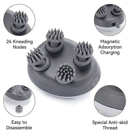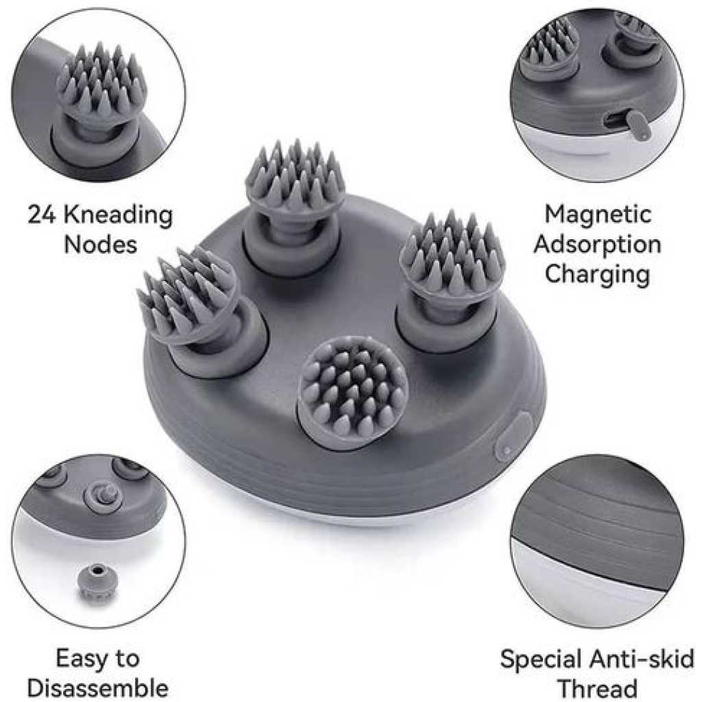 Key Features: Electric Scalp Head Massager: This smart scalp massager has four massage heads with 21 individual nodes each which rotates both in clockwise and anti-clockwise directions. 4 removable rollers with soft silicone to increase blood circulation to the scalp, promoting relaxation, releasing stress and relieving sore. Super waterproof IPX7: This scalp massager is made with IPX7 waterproof material, it can withstand water depths up to 1 m for 30 minutes, and it can be used in both wet and dry to enjoy head massages in the shower. You can enjoy comfortable scalp massage while bathing, the skin-friendly soft silicone heads prevent hair from being pulled or tangled and not hurt your skin. USB Rechargeable: Electric scalp massage immediately adsorbs and charges when approaching the charging port. It’s small and lightweight, so it’s easy to carry around, relieve tension from your office, home or even your car. Enjoy anytime and anywhere. Wide Application Occasions: You can use this scratcher massager for the head, neck, back, etc any part of the body as it is designed to imitate human fingers giving you a relaxing massage. Also, the massage nodes are detachable for easy cleaning. Best Gift Choice: It will be the best gift for Christmas, Valentine’s Day or birthday gift to your loved ones, to your wife, mom, father, friends, your pet, etc.