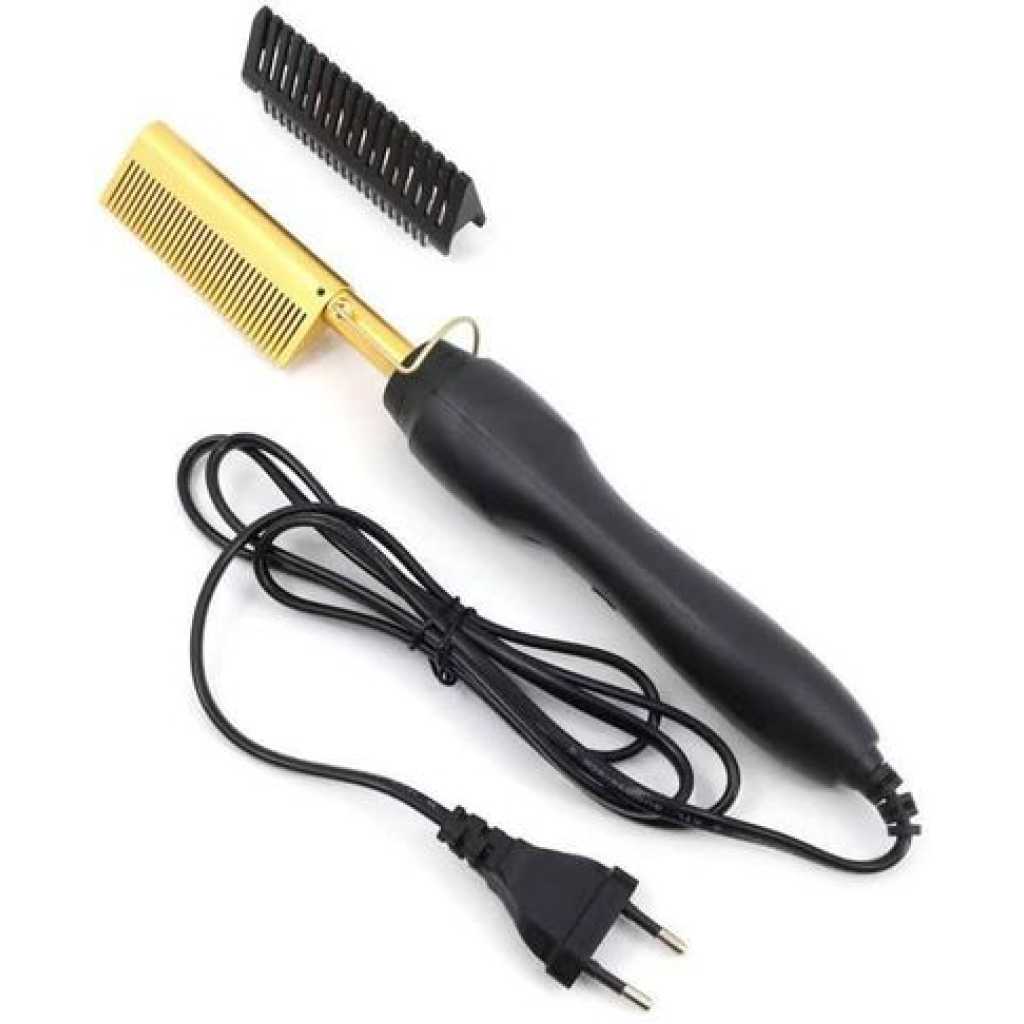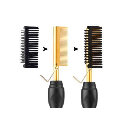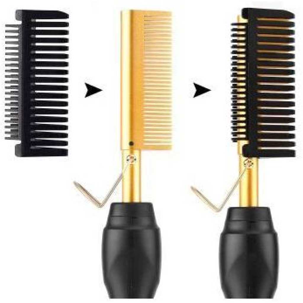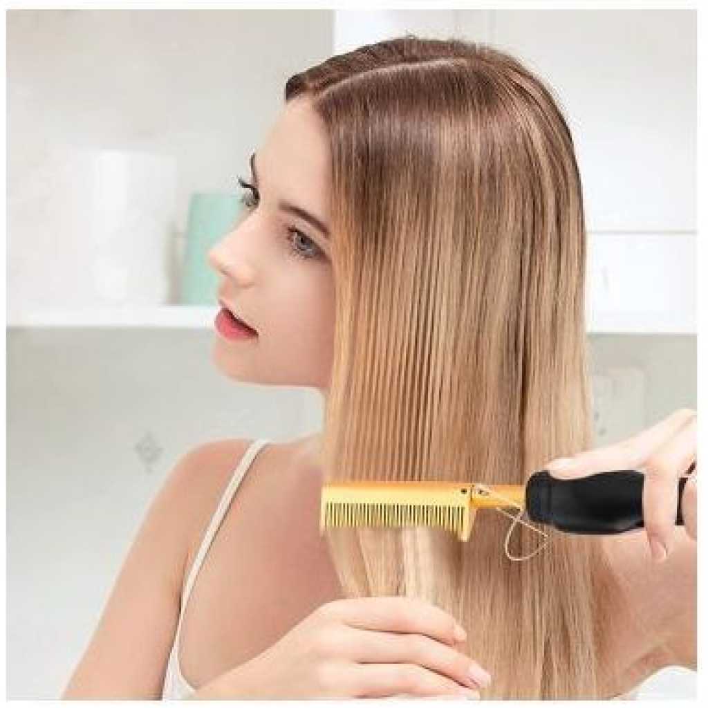 Electric Hot Comb Hair Straightener, High Heat Adjustable Temperature Iron Comb Straightening or Curly Hair – Pressing Combs for Natural Black Hair African American Hair & Wigs Electric Hot Comb Helps To Make The Hair Soft And Shiny. 1. Using ceramic technology, the electric comb can provide even heat, keep hair shiny, and do not produce frizz when straightening the hair. 2.2 in 1 Functions: not only can curly hair, but also straight hair. High-performance ALL-IN-ONE. 3. Auto-off safety feature, One-button operation design, easy to use.. 4. Suitable for all hair types: Long, short, damaged, colored, or hair extensions. 5. Lonic technology, less heat-related damage and keep hair shiny, smooth, shiny finish. Electric Hot Comb Makes your hair soft, smooth, elegant, beautiful, and shiny. Easy To Use This compact and simple straight electric hot comb comes with a 360-degree rotating power cord that prevents tangling which helps you operate with all your convenience. Usage by different temperatures follows the hair condition Gear adjustment: three gears (high, medium, low) High-end: 180~210? suitable for thick and hard hair Mid-range: 160~180? suitable for normal hair Low grade: 80~160? suitable for soft hair Titanium Alloy The heated combs provide even heat, do not harm hair, and help you make the hair bright & beautiful. Titanium Alloy The heated combs provide even heat, do not harm hair, and help you make hair bright & beautiful. Easy To Operate Simple design with On & Off switch buttons, clear to see, easy to operate. Here are 3 temperature controls, adjust the temperature. number. Heat-up Quickly The hot comb is heated quickly, and you can heat to the set temperature in just 20-30 seconds which can quickly reach the ideal temperature and greatly save modeling time.