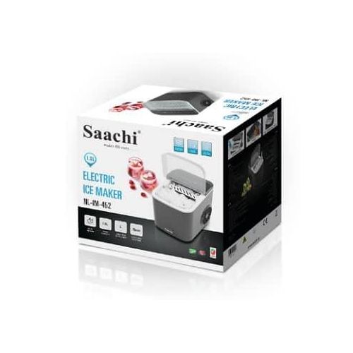 The Saachi NL-IM-452 Electric Ice Maker is the perfect solution for your ice-making needs, providing a continuous supply of large ice cubes with ease. With a 1.3L water tank and the capacity to produce 12kgs of ice in 24 hours,.. The Saachi NL-IM-452 Electric Ice Maker is the perfect solution for your ice-making needs, providing a continuous supply of large ice cubes with ease. With a 1.3L water tank and the capacity to produce 12kgs of ice in 24 hours, it dispenses 9 bullet-shaped ice pieces every 6-8 minutes. Featuring sleek plastic housing, a large transparent window, and a removable ice basket, this ice maker combines functionality and style. Its intelligent detection system notifies you of water shortages, and the high-efficiency compressor ensures low energy consumption.