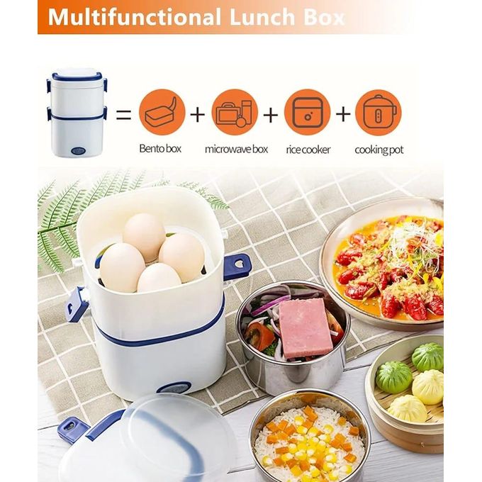 Electric Lunch Box Food Heater 1/2 Layers Heated Lunch Boxes Double Protection Stainless Steel Portable Mini Microwave Food Warmer for Adults Workplace Travel Features: 1.Stainless steel inner pot 2.One key operation 3.Convenient 4.Anti-dry burn protection 5.Easy to clean non-stick pan ✅Specification: 1.style: double/single 2.Rated voltage: 220V 3.suitable: home/dormitory/office 4.Capacity: 0.6LX2 large capacity 5.material: stainless steel material 6.Double protection: anti-dry burn protection and high temperature ✅what can you get? electric lunch box x1 Stainless steel inner pot x1/x2 Power cable Key Features: Electric Lunch Box Food Heater 1/2 Layers Heated Lunch Boxes Double Protection Stainless Steel Portable Mini Microwave Food Warmer for Adults Workplace Travel Multifunctional Cooking】Heating lunch box with stainless steel bowl and 110v/220v office/home use plugs are included. You can heat or cook your meal at home, school, office or during travel. ✅Double Protection】Portable food warmer anti-dry protection and anti-high temperature protection, during the cooking process, lunch heater portable will automatically stop working if there is no water to prevent dry burning. ✅Large Capacity Tray】Lunch box warmer 0.6l 2 removable inner containers separates your different dishes conveniently. At the same time, it is equipped with an egg steamer to provide daily nutrition. ✅200W Fast Heating】Portable microwave adopts the latest designed ptc constant temperature heating, and uses 200w high power.Low-consumption and high-efficiency thermal cycle, heats a meal thoroughly in just 20 to 30 minutes. ✅Food Grade Material】Our electric cooking lunch box is made of food grade pp material, inner container is made of 304 stainless steel. High quality temperature resistant, easy to clean