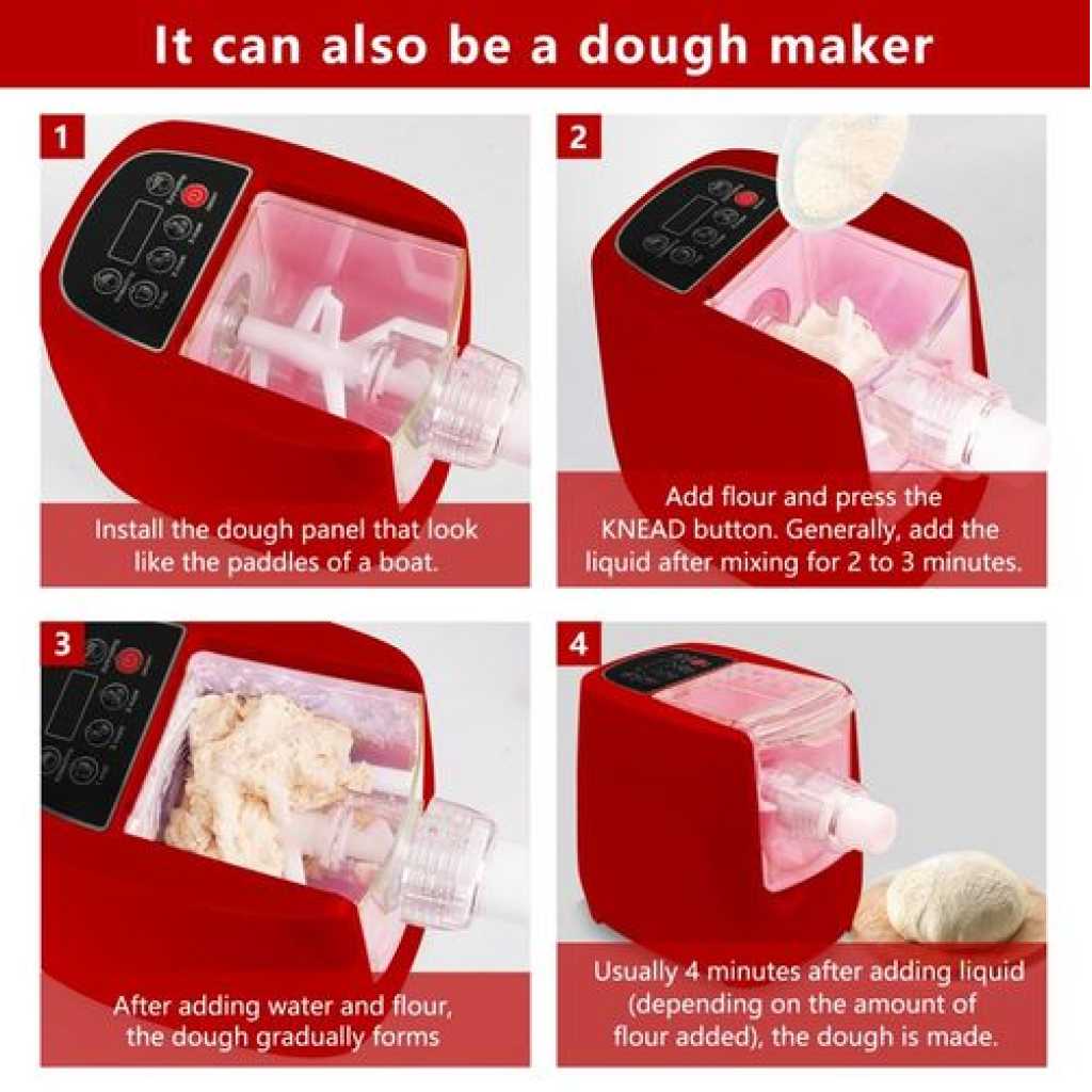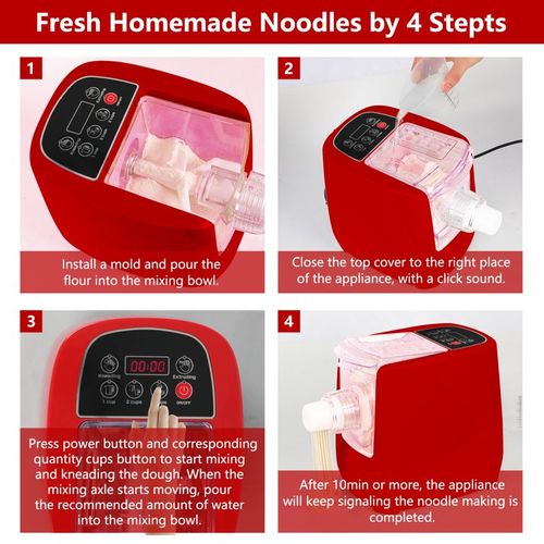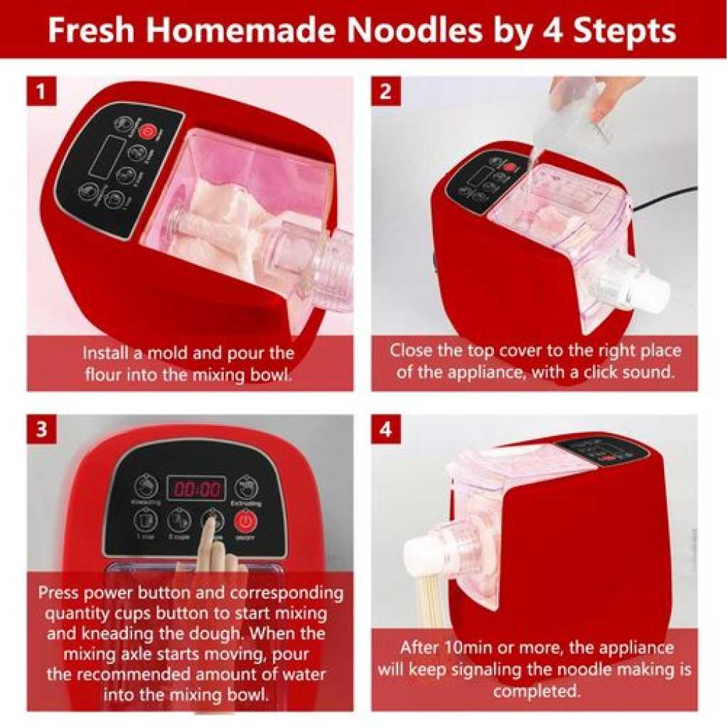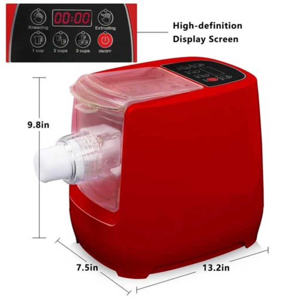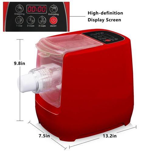 Electric Pasta Maker Machine, Automatic Noodle Maker With 12 Pasta Shapes, Red Homier Store is mainly engaged in commercial products of the kitchen, such as peanut butter grinders, pasta makers, coffee bean roasters,s, etc. Our products are convenient for customers, improve efficiency and create a unique flavor for customers. JORUGUNA high-quality pasta noodle maker can easily make delicious pasta in 15 minutes with a variety of accessories, ready for cooking or freezing! Say goodbye to bland, boxed noodles that are full of preservatives. It includes 12 different pasta molds and can also add different flavored beverages, you can make different shapes of delicious homemade noodles. This pasta maker machine will become one of the favorite appliances in your kitchen. Please don’t add too much water, or it will get stuck to the machine and won’t feed through. It should be that consistency of bread crumbs or grated cheese look. Let the remaining flour dry at the same time. Then gently scrape off the dry flour with cleaning tools. Finally, rinse and clean it with water, it will easier to clean Key Features: Electric Pasta Maker Machine, Automatic Noodle Maker With 12 Pasta Shapes, Red EFFICIENT USE-This green pasta maker machine is fully automatic and can be used as a kneading or dough mixer machine. So no more rolling, mixing, kneading, and cranking by hand. Just add your ingredients and you can quickly produce homemade fresh pasta within 15 minutes, with no drying required. HIGH-QUALITY & MULTI-FUNCTION-The noodle maker is made of durable POM material, non-toxic. it comes with 12 types of noodle-shaping discs and some accessories, including a flour cup, measuring cup, etc. Fine and wide noodles can be chosen, very versatile. SAFETY & COMPACT DESIGN-The noodle maker has a power-off function for safety protection: if the lid is not closed or opened halfway, the machine will stop working. And it takes little kitchen space so it is very easy to store, which allows you to put it on the counter for everyday use. EASY TO OPERATE-The pasta maker machine has a simple control panel, equipped with a water surface ratio meter, a measuring cup, and a flour cup, which is easy to operate and clear at a glance. After a little practice, you will soon become a professional. HEALTHY GIFT CHOICE-You can try to make all kinds of healthy and gluten-free pasta. Caters to all your pasta-making needs. A perfect housewarming, wedding, or Christmas gift for family members or friends.
