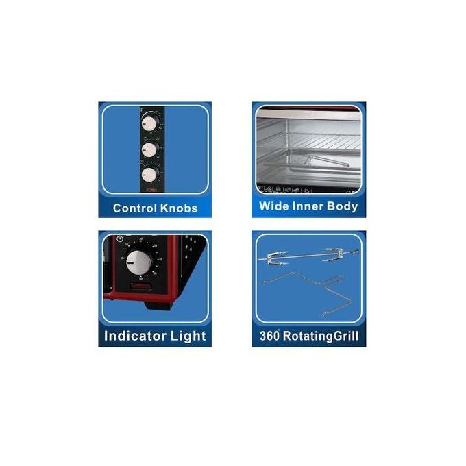 BE THE FIRST TO REVIEW “MASTER ELECTRO OVEN WITH HOT PLATE & ROTISSERIE, 35LTRS – BLACK, RED – EM-EO-1144-35HPR” Capacity: 35L Timer with auto shut off Dual heaters for total flexibility in cooking Motorized rotisserie for homemade barbeque Two hot plates for time-saving cooking Colour: Black, SPECIFICATIONS EM-EO-1144 Capacity: 35Litres Oven 1600Watts Rotisserie Tray handle supplied Bake, Grill Red