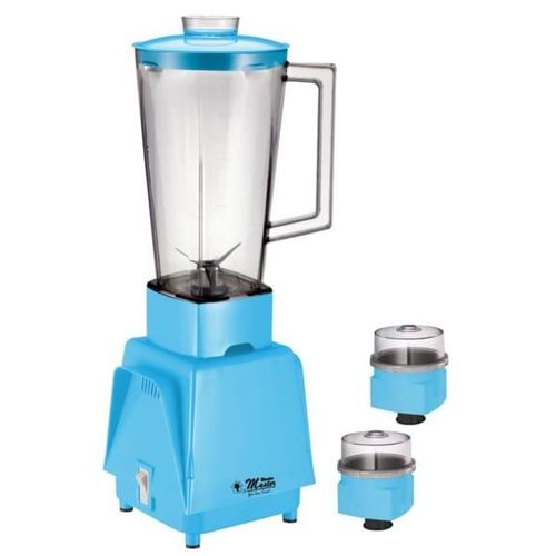 h this Electro Master 1.0L Blender, you can whip up delicious fresh fruit juices, smooth sauces, and homemade soups in an instant! It’s the perfect appliance for all your family favorites! Its sharp stainless-steel blades guarantee it will last you for a very long time, while its practical dosing cup makes it oh-so-easy to use! Simply open the lid and dosing cup to safely and easily add ingredients while the blender is operating. The mini-grinder opens up a whole new world of possibilities, allowing you to grind and grate your spices and ingredients in the blink of an eye. Blending has never been so easy! Key Features: Electro Master EM-BL-1071 1.0L Jar Blender & 2 Grinders – Blue. Motor: 350W Stainless steel Blade 1 jar – 1.0L 2 Grinders 3 speed + pulse function High Quality plastic body Removable Accessories for easy cleaning