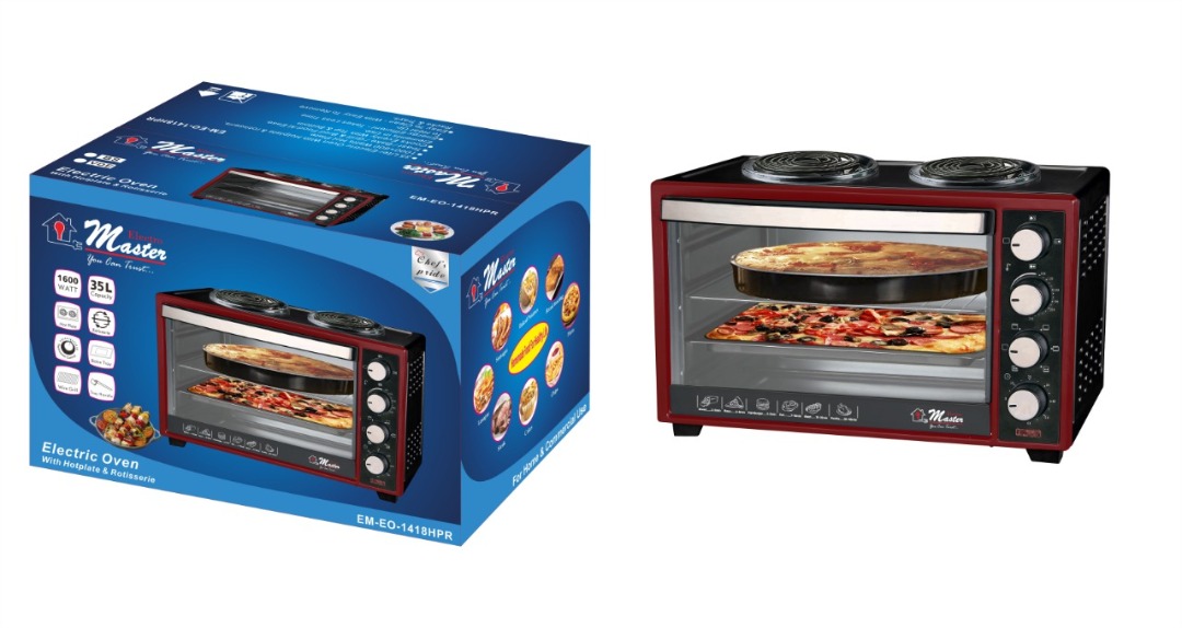 Key Features: Capacity: 35L Timer with auto shut off Dual heaters for total flexibility in cooking Motorized rotisserie for homemade barbeque Two hot plates for time-saving cooking Colour: Black, Red