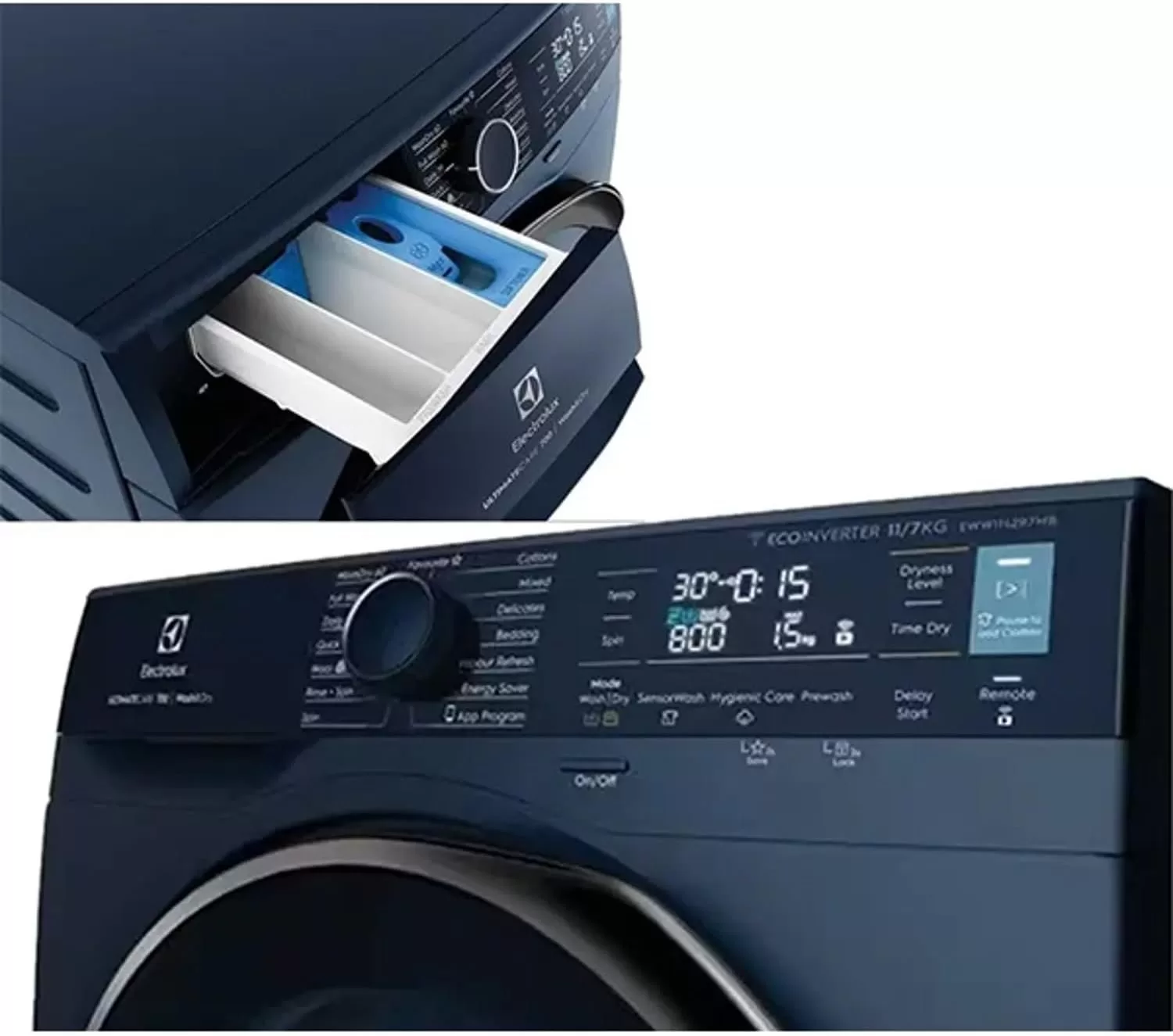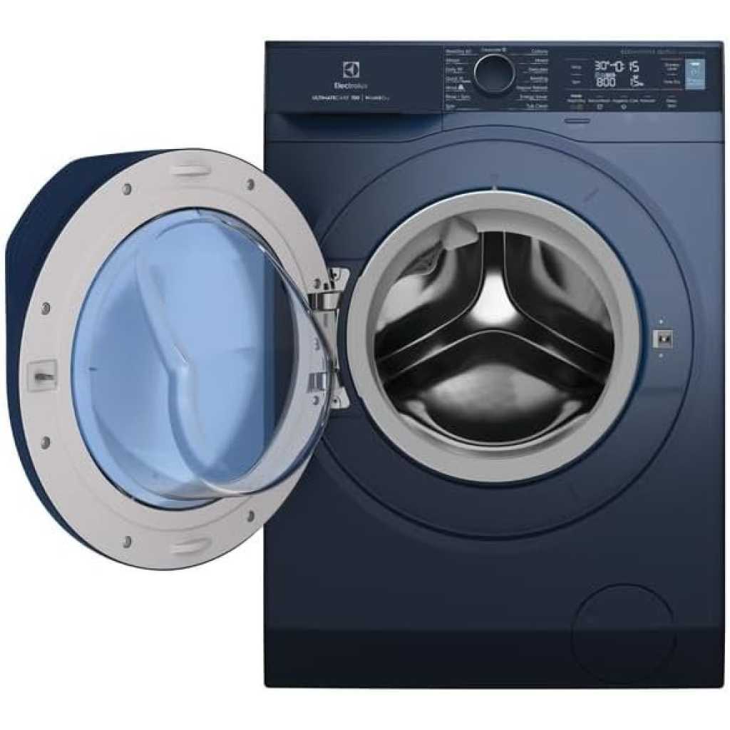 Electrolux 10/7 KG Washer Dryer EWW1042R7MB, 1400 RPM, EcoInverter Motor, Fully Automatic Front Load Combo Washing & Drying Machine, 15 Programs – UltraMix/Delay Timer/SensiCare/Child Lock – Blue. 【SENSOR WASH】 Wash out all kinds of stubborn stains with ease, without the need for pre-treatments. SensorWash technology use AI sensors to automatically detect dirt and soil levels and then adjusts the cycle duration accordingly to effortlessly remove 49 different visible stains, including oil, red wine, mud and chocolate 【ULTRA MIX】 With UltraMix technology, detergent and softener is thoroughly dissolved and activated before it enters the drum. This ensures that your clothes are cleaned without leaving visible detergent residue at the end of the cycle. With UltraMix you can say goodbye to visible detergent residue and forget rewashing 【ABAYA CARE】 Abaya care with confidence. The dedicated Abaya cycle uses a very low spin speed and 3 rinse phases to deliver specific care for delicate Abaya fabric. Outstanding cleaning performance combined with tailored care means you can wash your Abaya with confidence 【HYGIENIC CARE】 Clean with added hygiene. The HygienicCare option finishes the wash cycle with a soft spray of vapour to remove up to 99.9% of allergens and germs.* HygienicCare produces vapour at just 40°C, so it is gentler on your fabrics, whilst also saving energy 【VAPOUR REFRESH CYCLE】 Refresh without washing. Quickly revitalise your garments and smoothen out creases in under 30 minutes with the VapourRefresh cycle. Your clothes will emerge refreshed, with up to 23% less wrinkles compared to air drying From the manufacturer