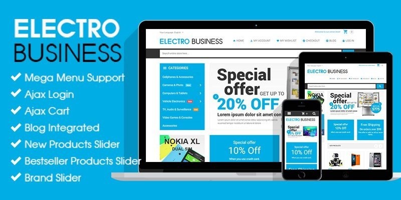 Electronics Business - Responsive Magento Theme. This electronics business magento template can help you promote your offerings in a visually attractive way.