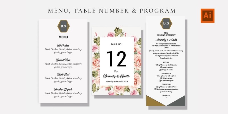 Elegant Wedding Preparation Cards. Elegant Menu, Table and Program Wedding Cards - Multipurpose