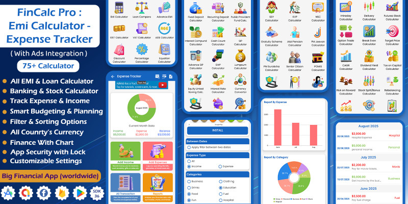 EMI Calculator : Expense Tracker Android App. EMI Calculator & Expense Tracker app to calculate loan EMIs, track expenses, manage budgets, and plan finances easily.