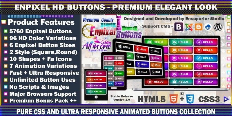 Enpixel - Responsive Mega Buttons Pack - Pure CSS. Enpixel buttons pack is the #1 professional and advanced pure CSS buttons script on the digital market (All in one solution).