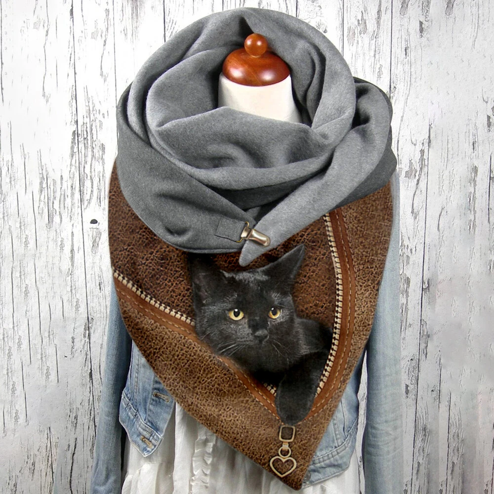 Ženy roztomilý 3D Vision Cartoon Black Cat Pattern Neck Protection Warm Šála