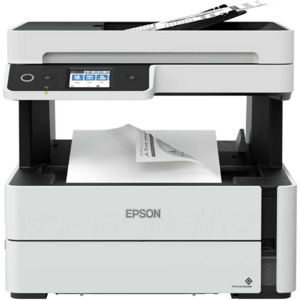 The Epson EcoTank M3140 Mono Ink Tank Printer is a powerful 4-in-1 multifunction printer designed for high-volume, cost-efficient monochrome printing. It combines printing, scanning, copying, and faxing in a compact and energy-efficient design, making it ideal for small businesses, home offices, and corporate environments that demand reliability and performance. PrecisionCore Heat-Free Technology At the heart of the M3140 is Epson’s PrecisionCore Heat-Free Technology , which delivers laser-quality text output without the need for heat during the printing process. This not only reduces energy consumption but also enhances print speed and durability. The printer achieves up to 20 images per minute (ipm) for standard prints and up to 39 pages per minute (ppm) in draft mode. Ultra-Low Cost Per Page The EcoTank M3140 is engineered to slash printing costs. Each high-yield pigment ink bottle can print up to 6,000 pages , and the included starter bottles offer up to 11,000 pages combined. This results in a cost per page as low as 15 paise , making it significantly more economical than traditional laser printers. 4-in-1 Functionality with ADF and Fax This printer isn’t just about printing. It includes: Flatbed CIS scanner with 1200 x 2400 dpi resolution 35-sheet Automatic Document Feeder (ADF) for batch scanning and copying Fax capability with up to 100 speed dials and error correction mode Copy features including auto fit, reduction/enlargement (25–400%), and up to 99 copies Auto Duplex and Paper Handling The M3140 supports automatic double-sided printing at speeds of up to 9 ipm , helping reduce paper usage by up to 50%. The 250-sheet input tray and 100-sheet output tray support various media sizes including A4, Legal, Letter, and envelopes. Compact, Spill-Free Design The printer features a compact integrated tank design with a spill-free ink refill system . The 6.1cm color touch panel offers intuitive navigation and control, making it easy to manage print jobs and settings. Energy Efficient and Eco-Friendly Compared to mono laser printers, the M3140 consumes up to 95% less power , making it an environmentally responsible choice. It’s Energy Star® certified and designed to operate quietly and efficiently. Connectivity and Compatibility The printer supports USB 2.0 connectivity and is compatible with Windows and macOS platforms. It integrates seamlessly into most office environments and supports Epson’s software suite for enhanced productivity. Durability and Warranty Built for high-volume printing, the M3140 has a recommended monthly duty cycle of 5,000 pages and a maximum monthly volume of 20,000 pages . Technical Specifications Functions: Print, scan, copy, fax Printing Technology : PrecisionCore Heat-Free Nozzle Configuration : 400 x 2 nozzles black Minimum Ink Droplet Size : 2.8 pl Ink Type : Pigment-based black ink Print Resolution : 1200 x 2400 dpi Print Speed (ISO) : 20 ipm (mono) Max Print Speed : 39 ppm (draft) Duplex Print Speed : 9 ipm First Page Out Time : 6 sec (simplex), 13 sec (duplex) Copy Speed : Up to 17 ipm Copy Resolution : 600 x 600 dpi Max Copies : 99 Reduction/Enlargement : 25% – 400% Scanner Type : Flatbed CIS Scan Resolution : 1200 x 2400 dpi ADF Capacity : 35 sheets Fax Speed Dials : Up to 100 Fax Transmission Speed : Approx. 3 sec/page Connectivity : USB 2.0 LCD Display : 6.1 cm color touch panel Power Consumption : 13W (operating), 0.7W (sleep), 0.3W (off) Dimensions : 375 x 347 x 302 mm Weight : 6.4 kg Warranty : Up to 1 year