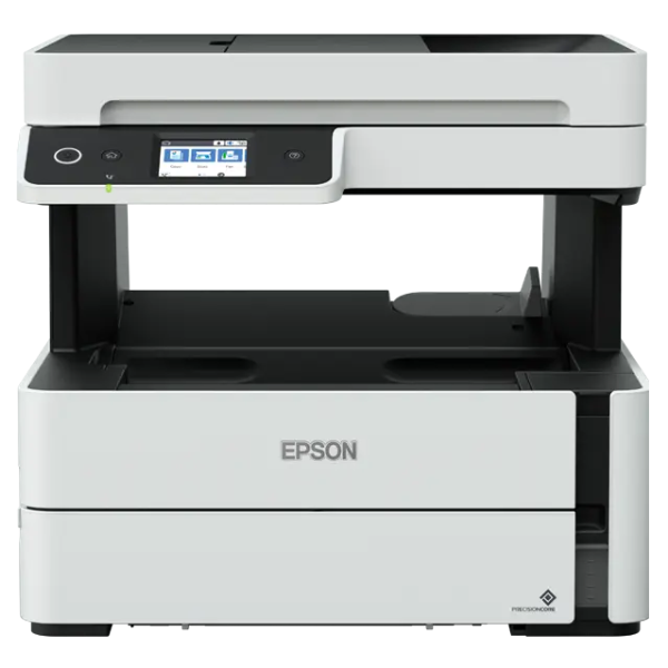 Key Features: Functions: Print, scan, copy, fax Printing Technology : PrecisionCore Heat-Free Nozzle Configuration : 400 x 2 nozzles black Minimum Ink Droplet Size : 2.8 pl Ink Type : Pigment-based black ink Print Resolution : 1200 x 2400 dpi Print Speed (ISO) : 20 ipm (mono) Max Print Speed : 39 ppm (draft) Duplex Print Speed : 9 ipm First Page Out Time : 6 sec (simplex), 13 sec (duplex) Copy Speed : Up to 17 ipm Copy Resolution : 600 x 600 dpi Max Copies : 99 Reduction/Enlargement : 25% – 400% Scanner Type : Flatbed CIS Scan Resolution : 1200 x 2400 dpi ADF Capacity : 35 sheets Fax Speed Dials : Up to 100 Fax Transmission Speed : Approx. 3 sec/page Connectivity : USB 2.0 LCD Display : 6.1 cm color touch panel Power Consumption : 13W (operating), 0.7W (sleep), 0.3W (off) Dimensions : 375 x 347 x 302 mm Weight : 6.4 kg Warranty : Up to 1 year