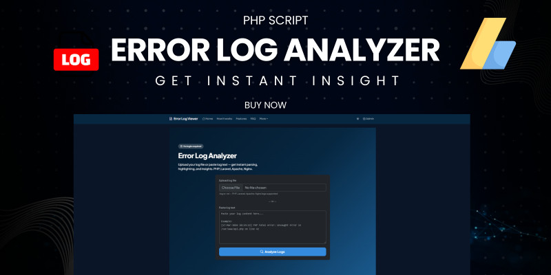 Error Log Analyzer - PHP Script with Admin Panel. Turn messy server logs into clear, actionable insights in seconds.