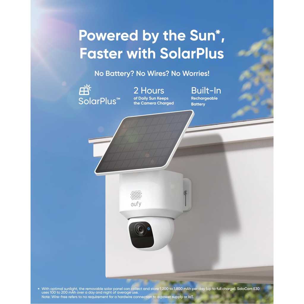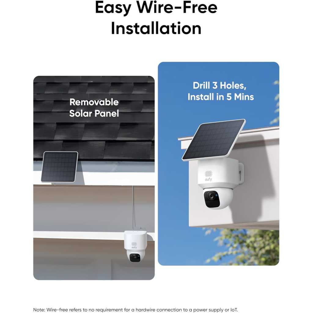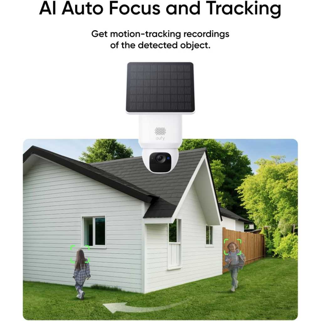 360° Vision, Every Corner in Sight: Enjoy comprehensive coverage with a wide viewing angle, minimizing blind spots and allowing you to monitor your front porch, yard, or even your driveway. Enhanced 2K Clarity Day and Night: Experience crystal-clear 2K clarity day and night, capturing every detail that matters. With an f/1.6 aperture and 2K Clarity, our product always ensures superior image quality. Stay Charged With Forever Power: With a removable solar panel, 2 hours of daily sun keeps the camera charged. SolarPlus technology gives you always-on security and constant peace of mind. No Monthly Fee: Keep your footage private with a microSD card up to 128 GB (microSD card not included), with no subscription fees. AI Motion Detection and Smart Tracking: Built-in AI instantly detects and automatically tracks people, vehicles, or important events within view, minimizing false alarms and keeping your property secure. Dual Compatibility with HomeBase S380 & HomeBase S280: Unlock advanced AI capabilities and TB-scale local storage with HomeBase S380. Choose HomeBase S280 for enhanced group control systems and secure in-house storage. Please unbind your device before switching between HomeBases. Supports only 2.4GHz Wi-Fi networks for stable wireless performance. Key Features: 360° Vision, Every Corner in Sight: Enjoy comprehensive coverage with a wide viewing angle, minimizing blind spots and allowing you to monitor your front porch, yard, or even your driveway. Enhanced 2K Clarity Day and Night: Experience crystal-clear 2K clarity day and night, capturing every detail that matters. With an f/1.6 aperture and 2K Clarity, our product always ensures superior image quality. Stay Charged With Forever Power: With a removable solar panel, 2 hours of daily sun keeps the camera charged. SolarPlus technology gives you always-on security and constant peace of mind. No Monthly Fee: Keep your footage private with a microSD card up to 128 GB (microSD card not included), with no subscription fees. AI Motion Detection and Smart Tracking: Built-in AI instantly detects and automatically tracks people, vehicles, or important events within view, minimizing false alarms and keeping your property secure. Dual Compatibility with HomeBase S380 & HomeBase S280: Unlock advanced AI capabilities and TB-scale local storage with HomeBase S380. Choose HomeBase S280 for enhanced group control systems and secure in-house storage. Please unbind your device before switching between HomeBases. Supports only 2.4GHz Wi-Fi networks for stable wireless performance.