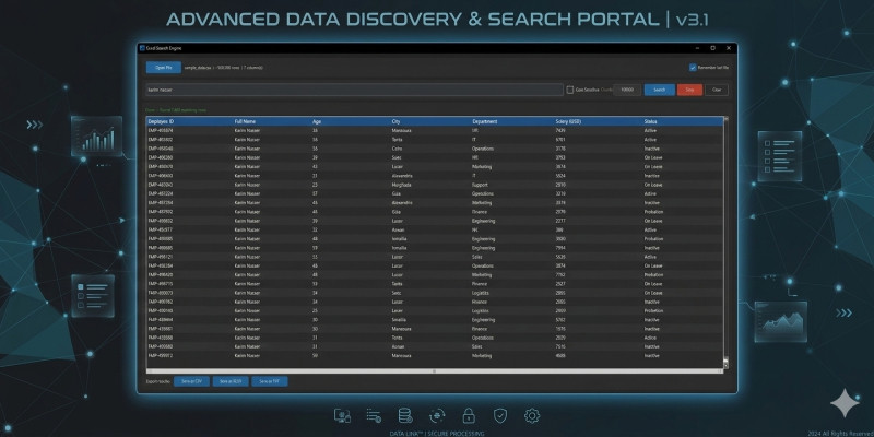 Exact Excel Search Engine - Python Desktop App. A fast desktop search tool for Excel and CSV files with exact match search, live streaming results, and multi-format export.