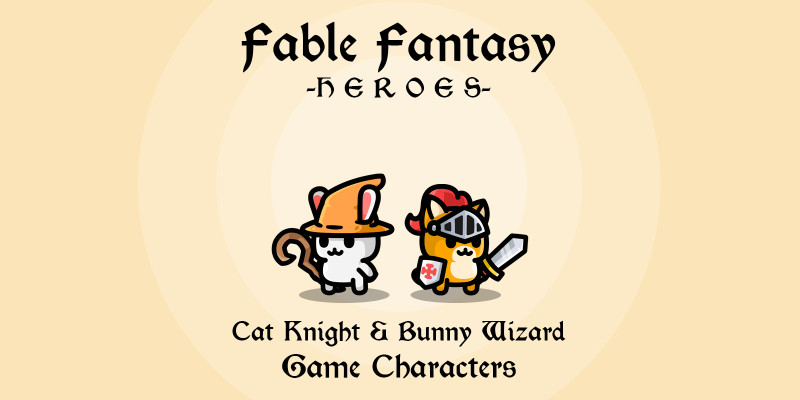 Fable Fantasy Heroes - Cat Knight And Bunny Wizard. 2D game asset in the form of Cat Knight & Bunny Wizard Characters with Fable and Fantasy themes.