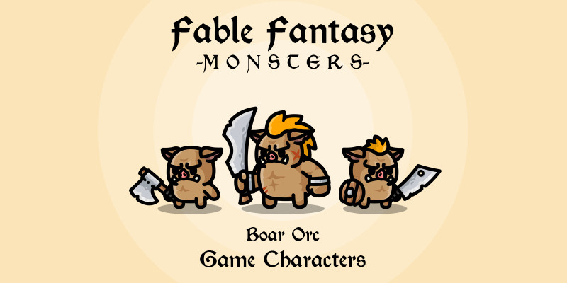 Fable Fantasy Monsters - Boar Orc. 2D game asset in the form of Boar Orc Monster Characters with Fable and Fantasy themes.