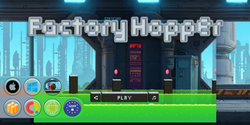 Factory Hopper - Buildbox Template. Dash and jump across unstable platforms in the thrilling industrial world of Factory Hopper!