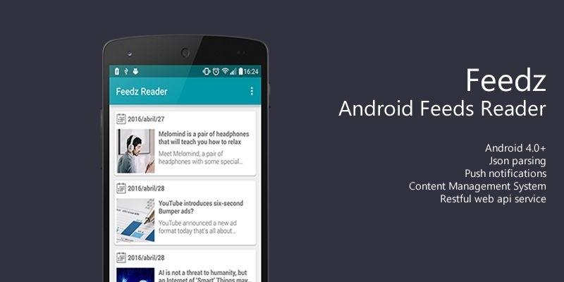 Feedz - Android Feeds Reader App Source Code. Feedz is an Android app to get news feeds from your own CMS
